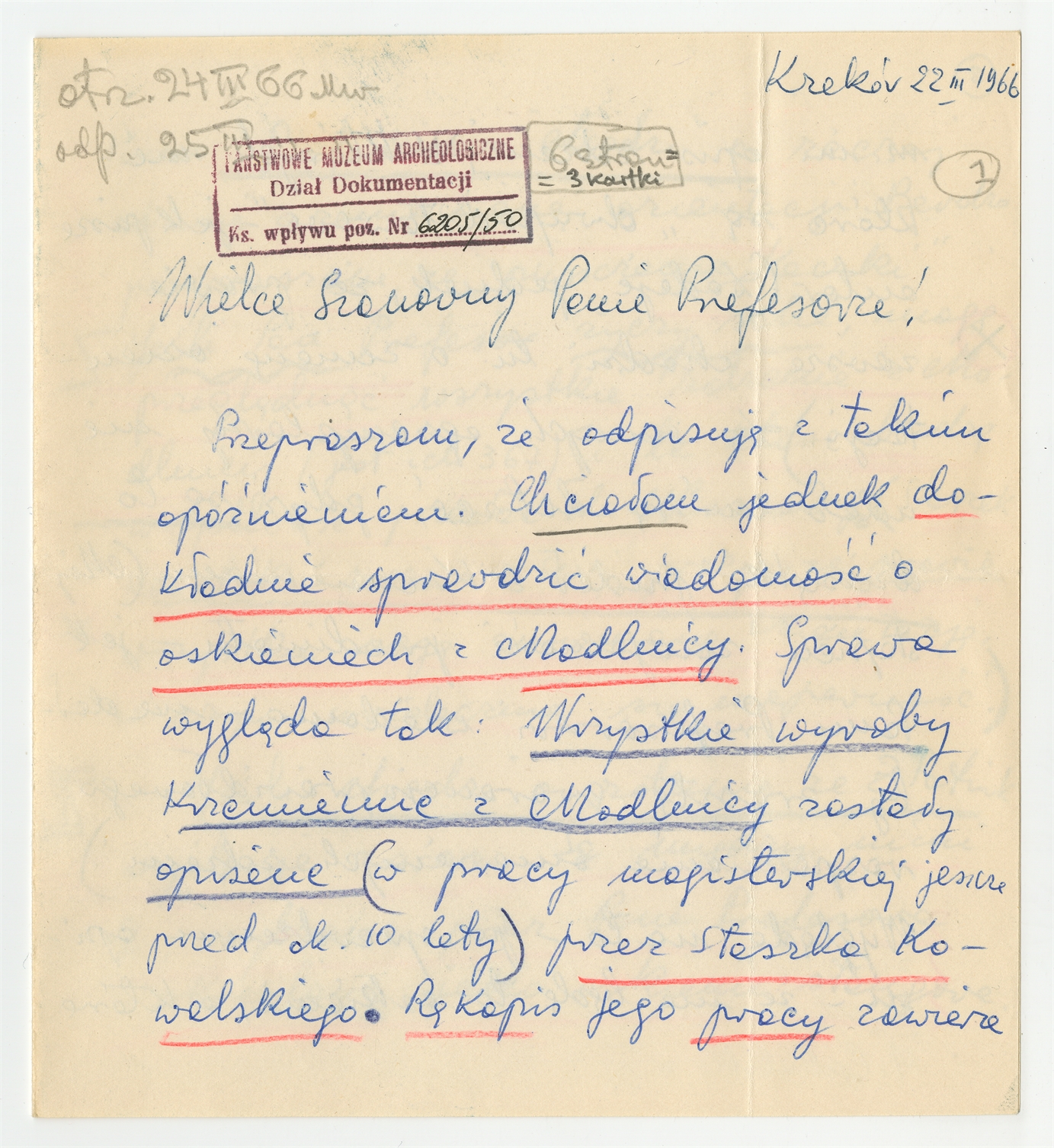 Rękopis - list Anny Dzieduszyckiej-Machnikowej do Stefana Krukowskiego z dn. 22 III 1966 r.