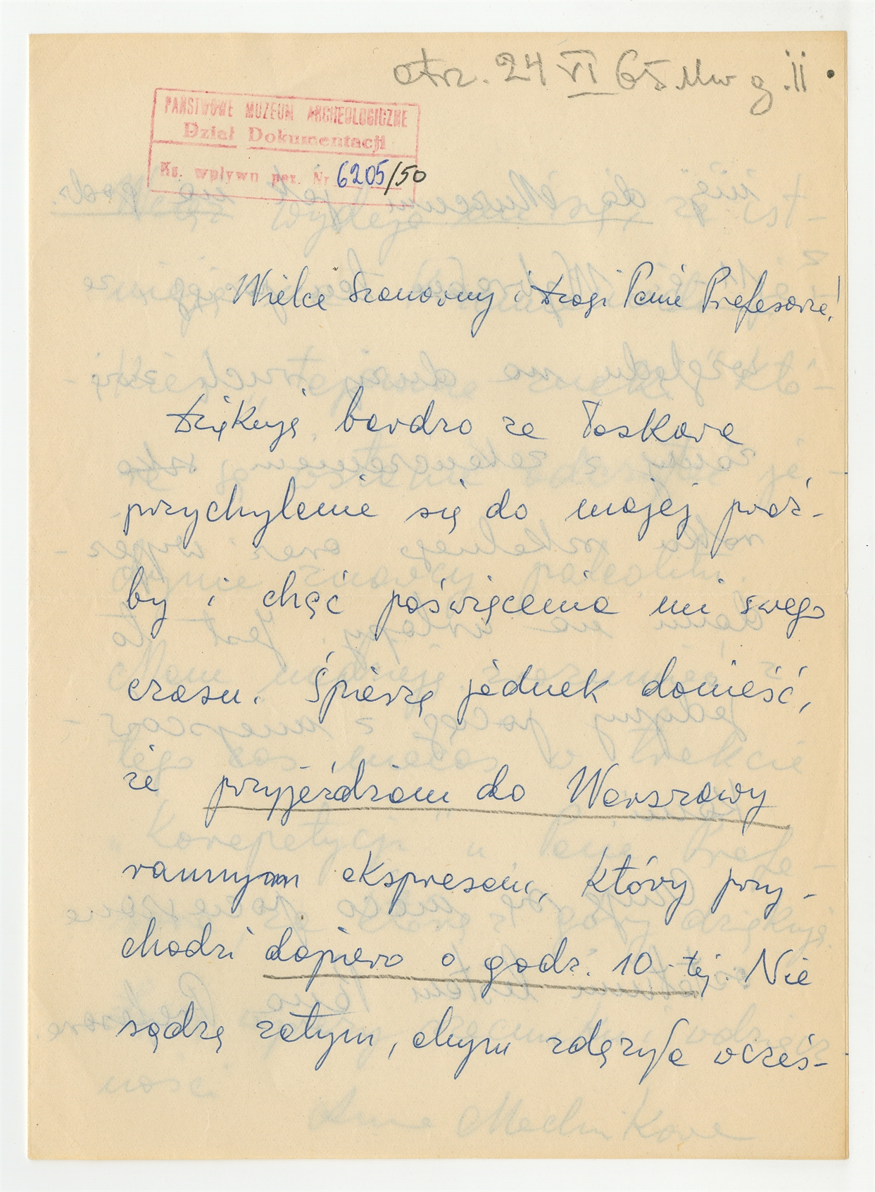 Rękopis - list Anny Dzieduszyckiej-Machnikowej do Stefana Krukowskiego z dn. 24 VI [19]65 r.