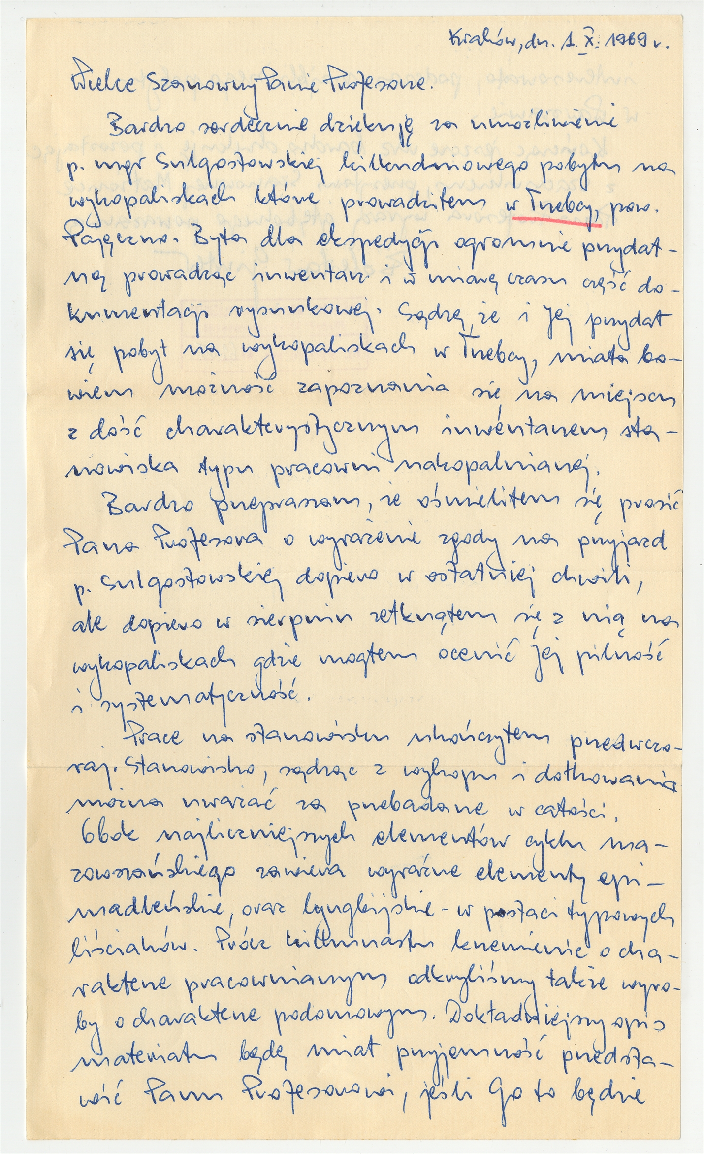 Rękopis - list Bolesława Gintera do Stefana Krukowskiego z dnia 1X 1969 roku