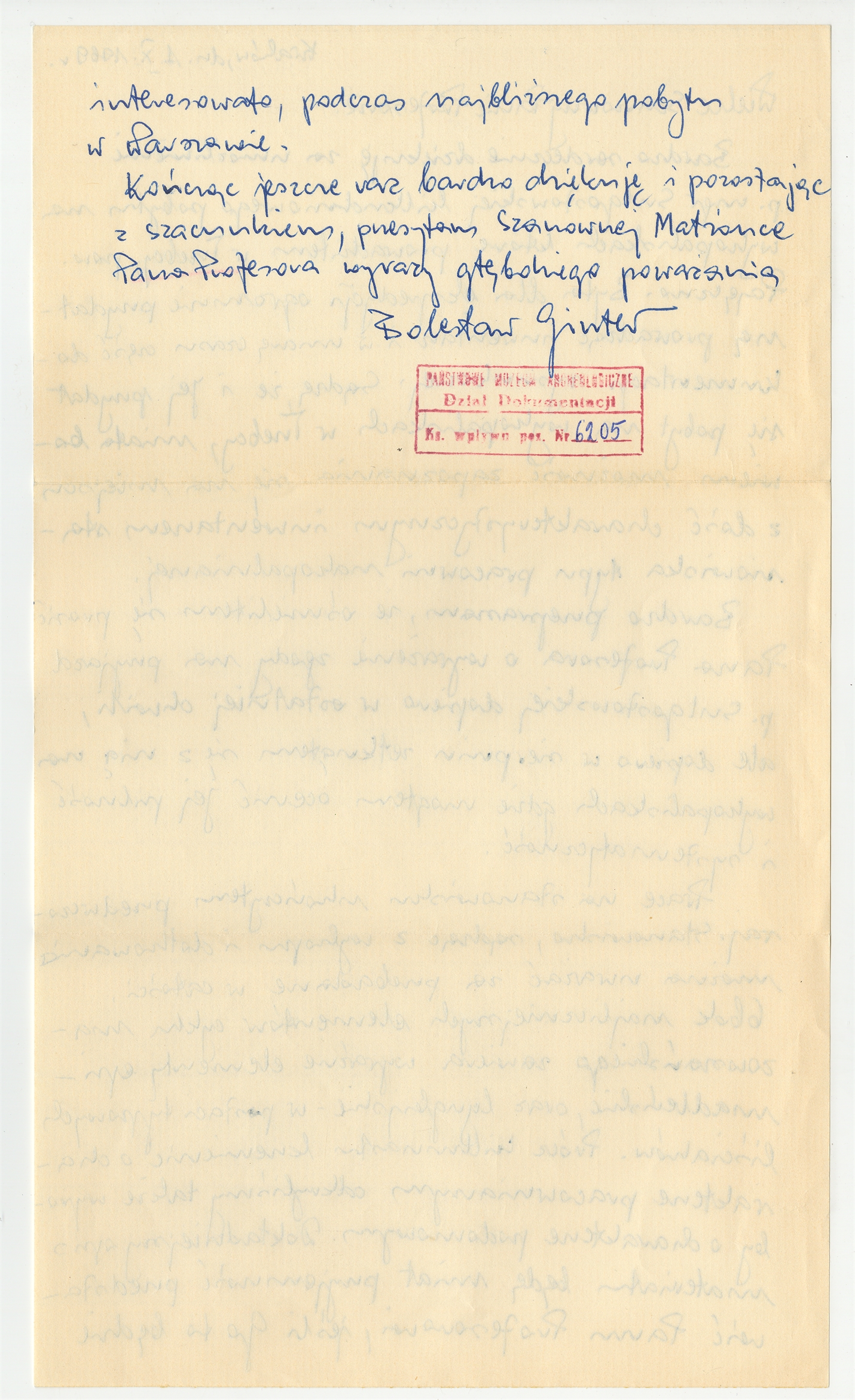 Rękopis - list Bolesława Gintera do Stefana Krukowskiego z dnia 1X 1969 roku (cd)