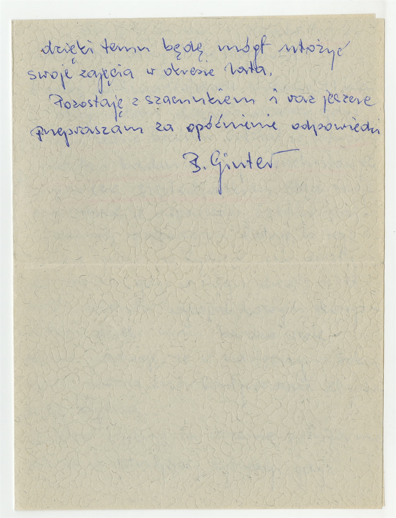Rękopis - list Bolesława Gintera do Stefana Krukowskiego z dnia 3 VI 1961 roku (cd)