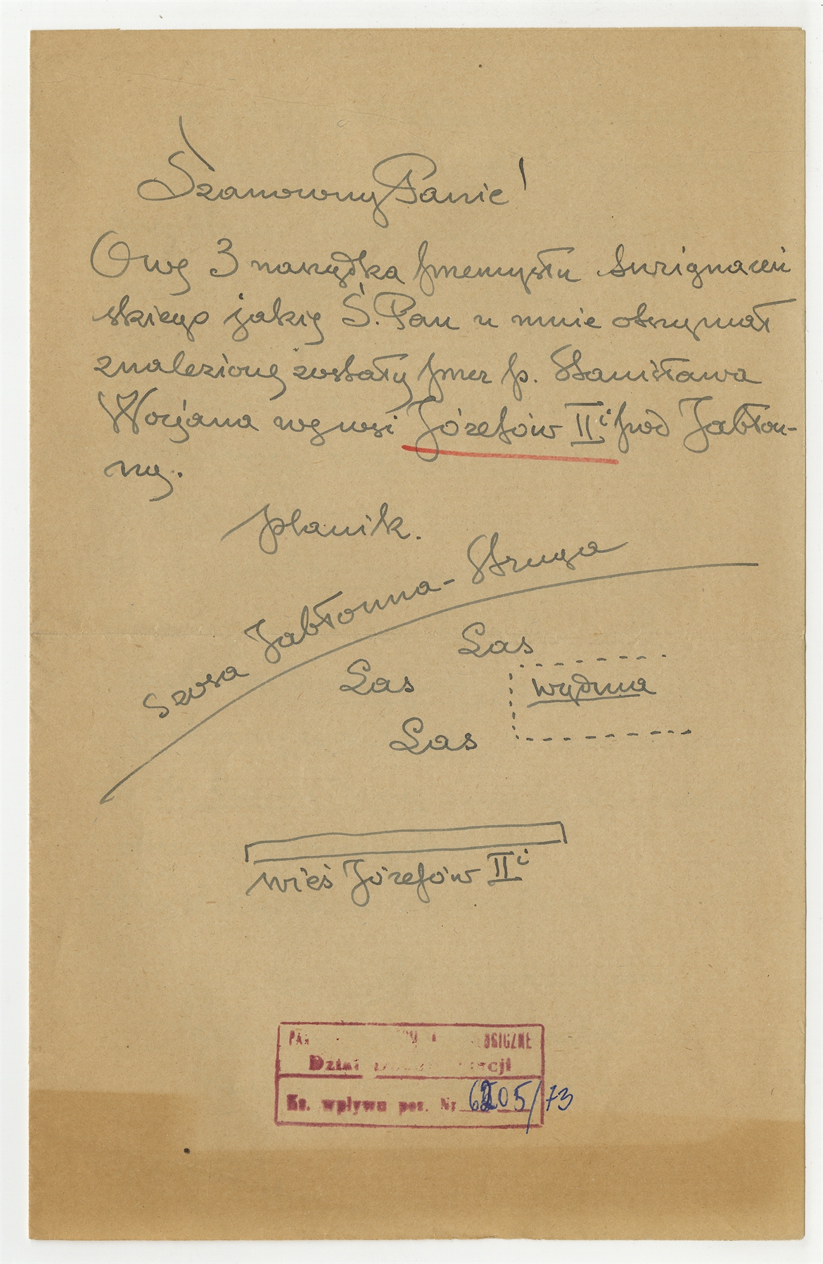 Rękopis – list do Stefana Krukowskiego w sprawie 3 narzędzi znalezionych we wsi Józefów 5-6 października 1929 r. str. 1: „Owe 3 narzędzia(...)”