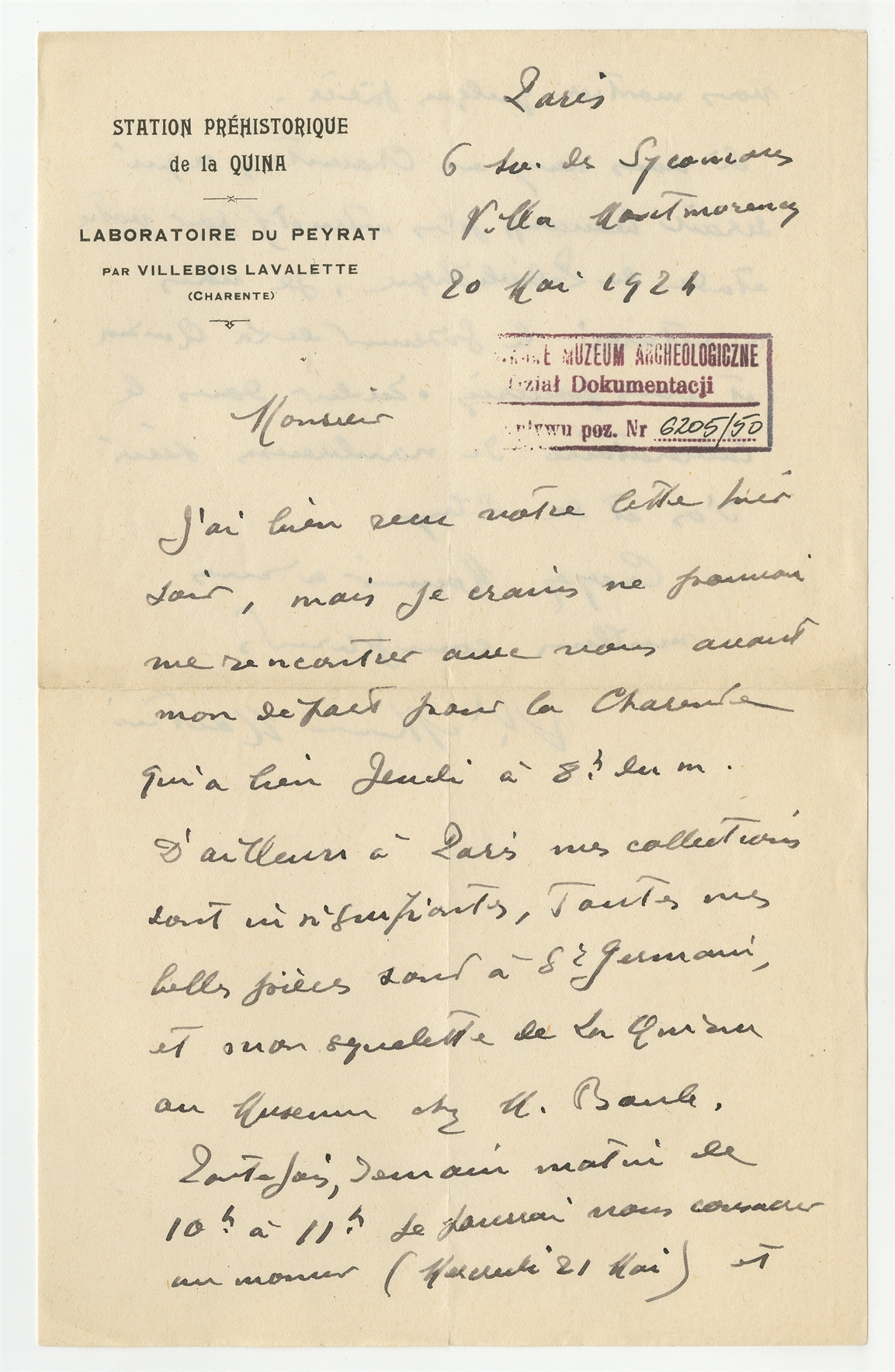 Rękopis - list do Stefana Krukowskiego z dn. 20 V 1924 r. w języku francuskim nadawca niezidentyfikowany