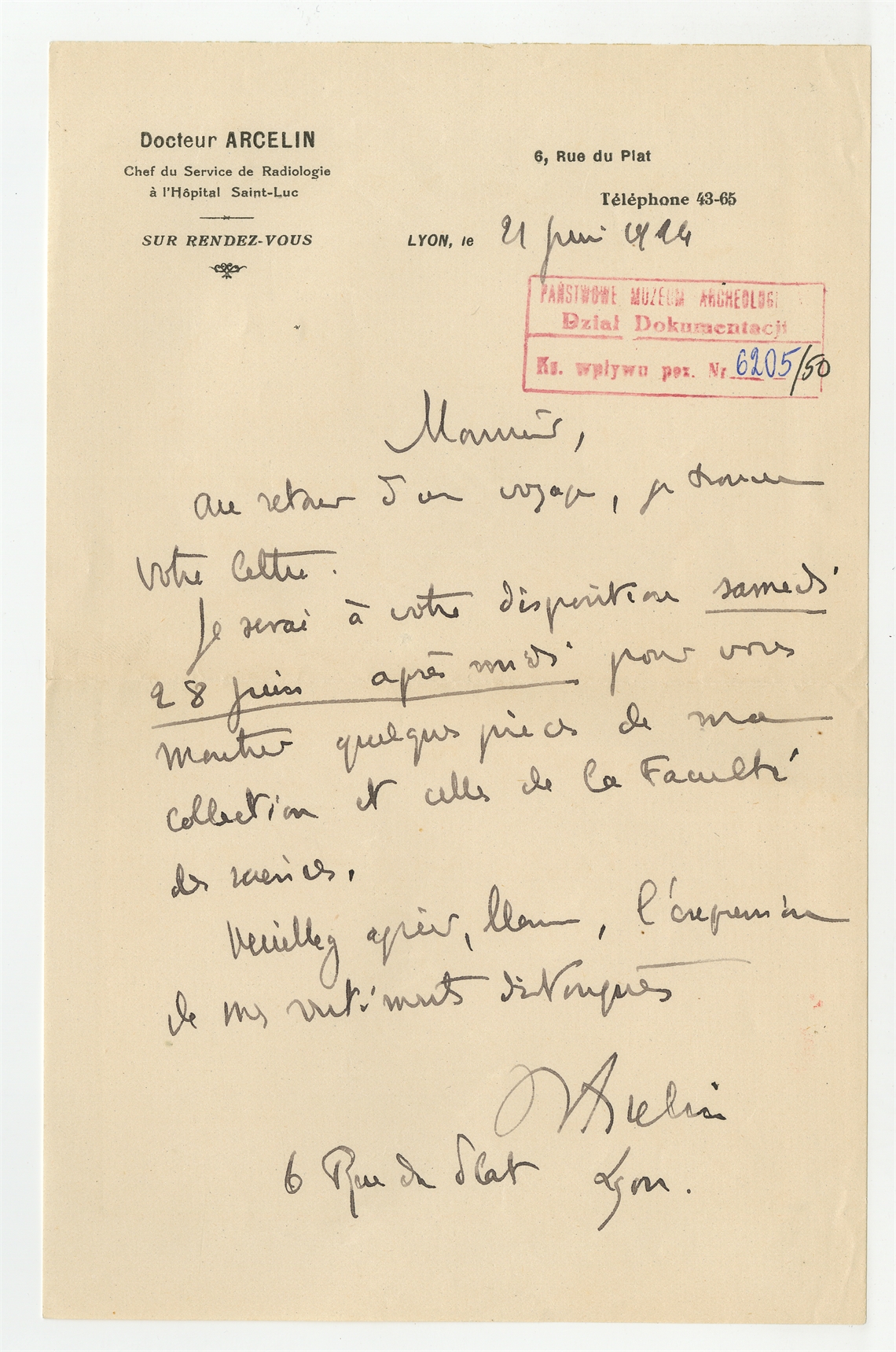 Rękopis - list do Stefana Krukowskiego z dn. 21 IV 1924 ? r. w języku francuskim nadawca niezidentyfikowany