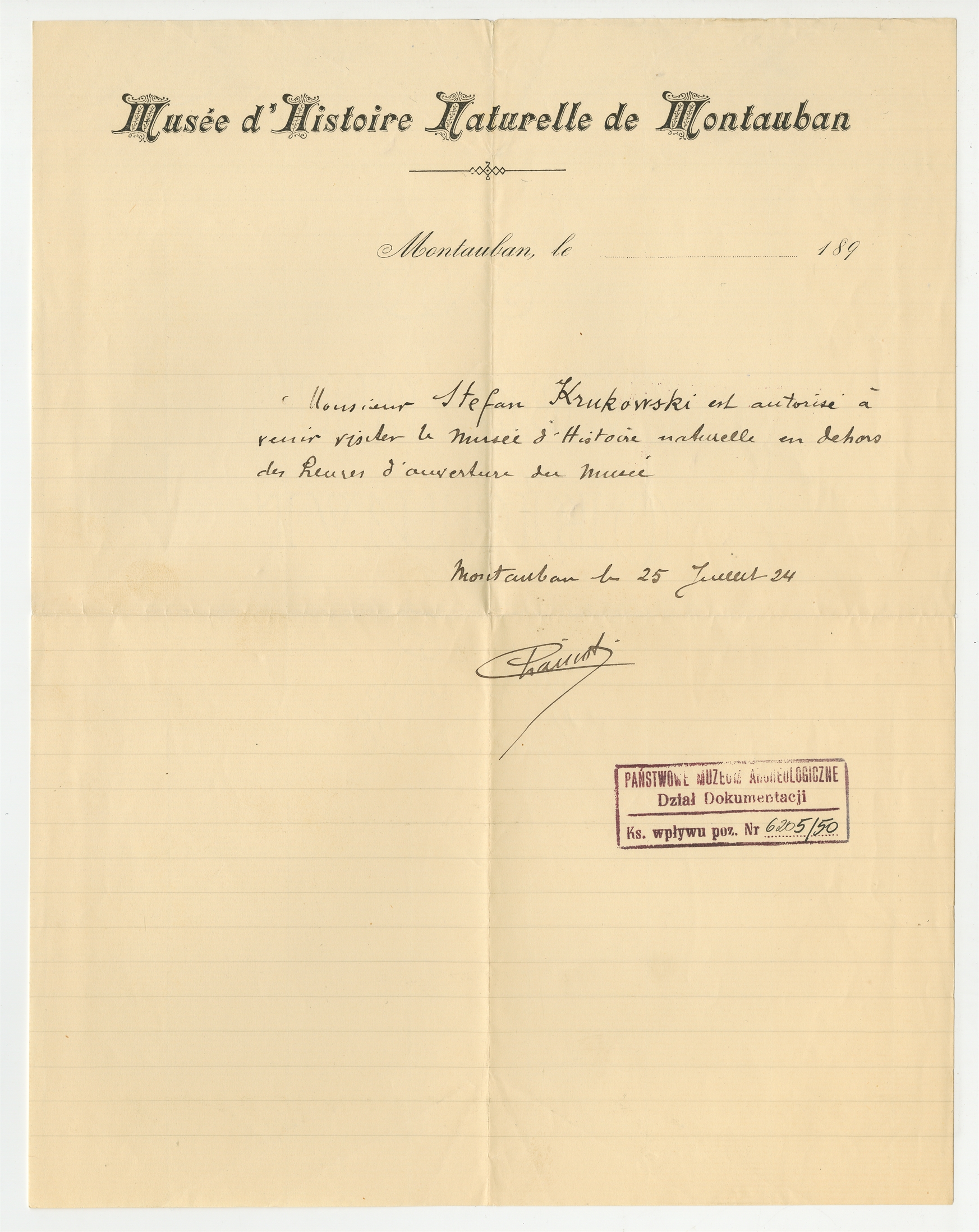 Rękopis - list do Stefana Krukowskiego z dn. 25 VII 1924 r. w języku francuskim nadawca niezidentyfikowany