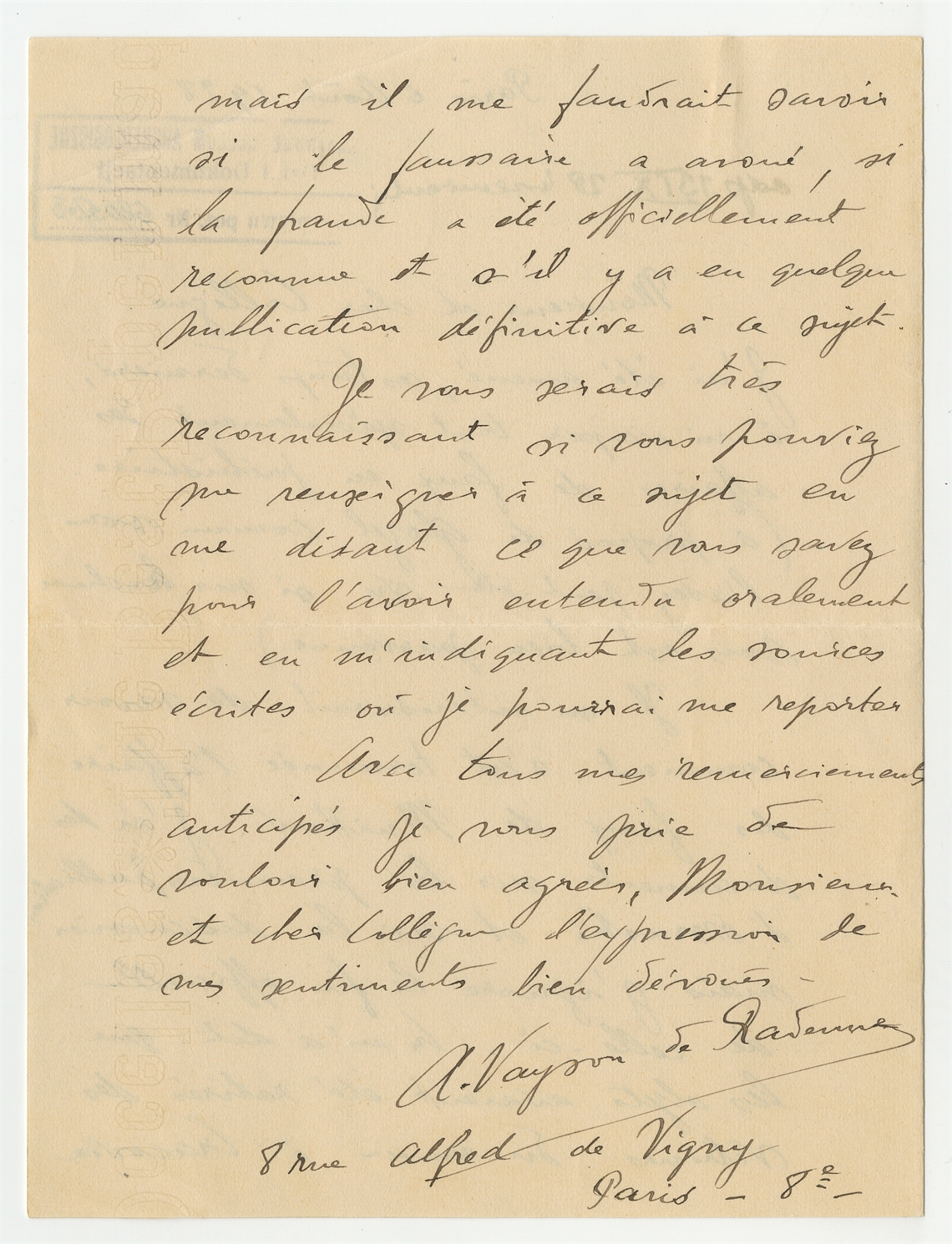 Rękopis - list do Stefana Krukowskiego z dn. 6 IX 1928 r. w języku francuskim nadawca niezidentyfikowany