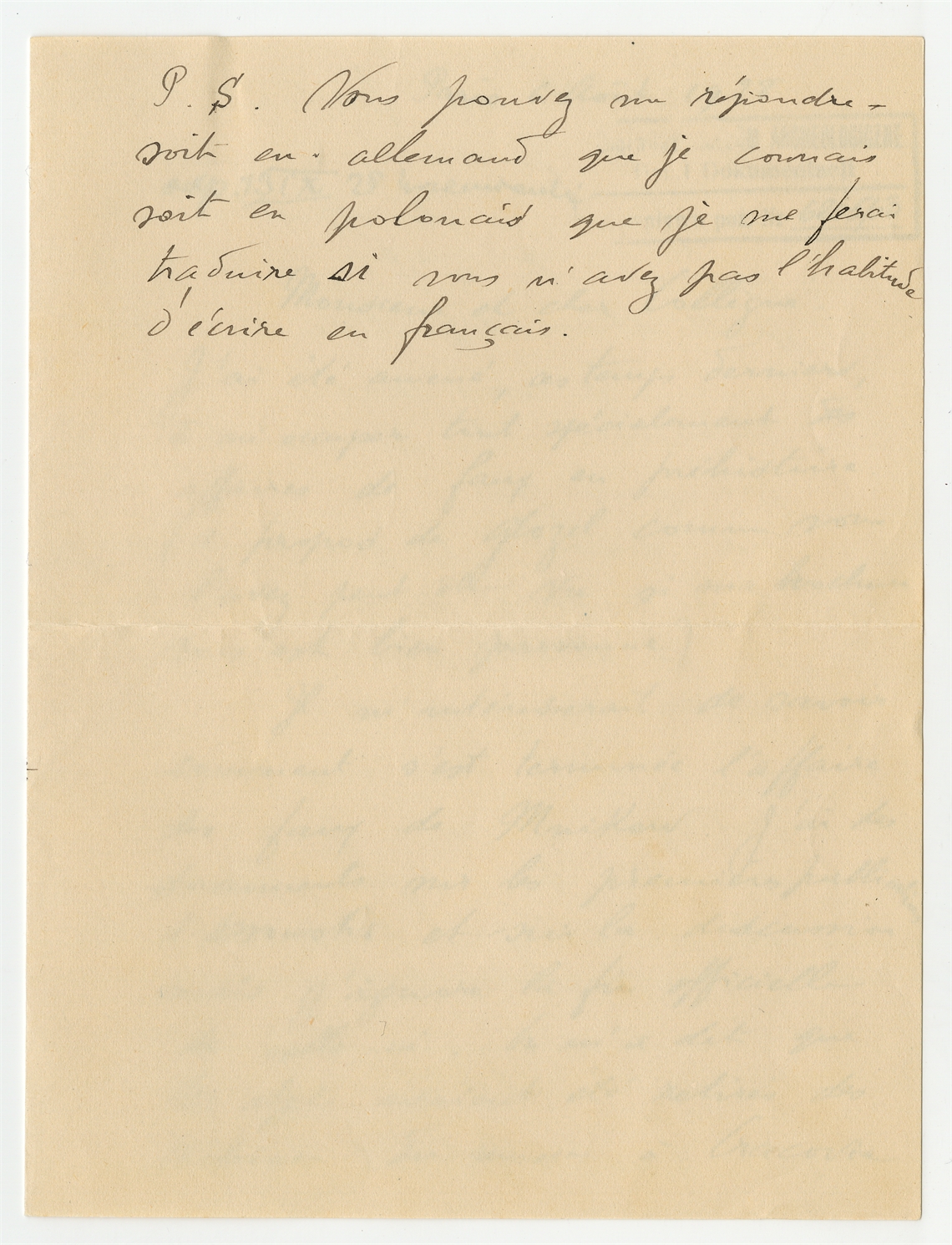 Rękopis - list do Stefana Krukowskiego z dn. 6 IX 1928 r. w języku francuskim nadawca niezidentyfikowany