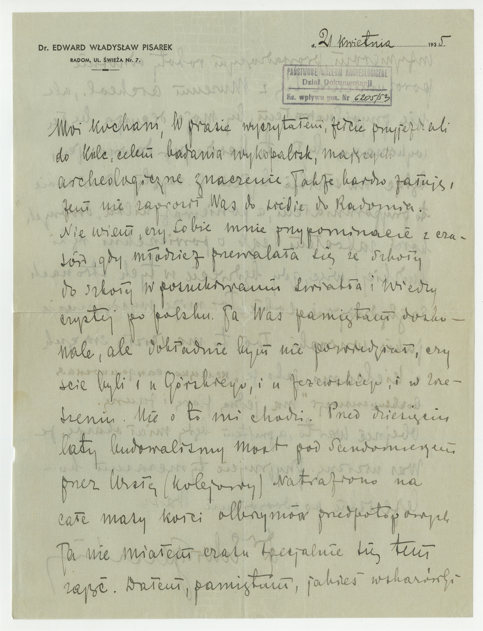 Rękopis - list Edwarda Władysława Pisarka do Stefana Krukowskiego z dnia 21 kwietnia 1935 roku