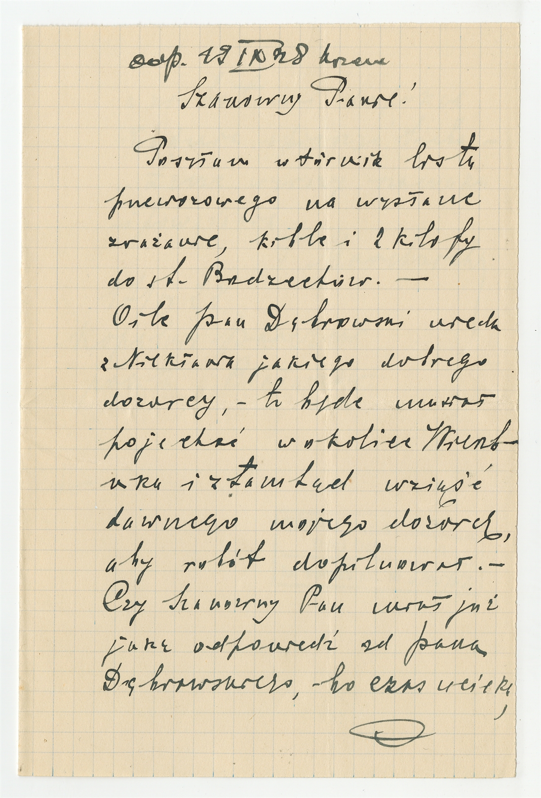 Rękopis - list Franciszka Marchwickiego do Stefana Krukowskiego z dnia 17 IX [19]28 roku