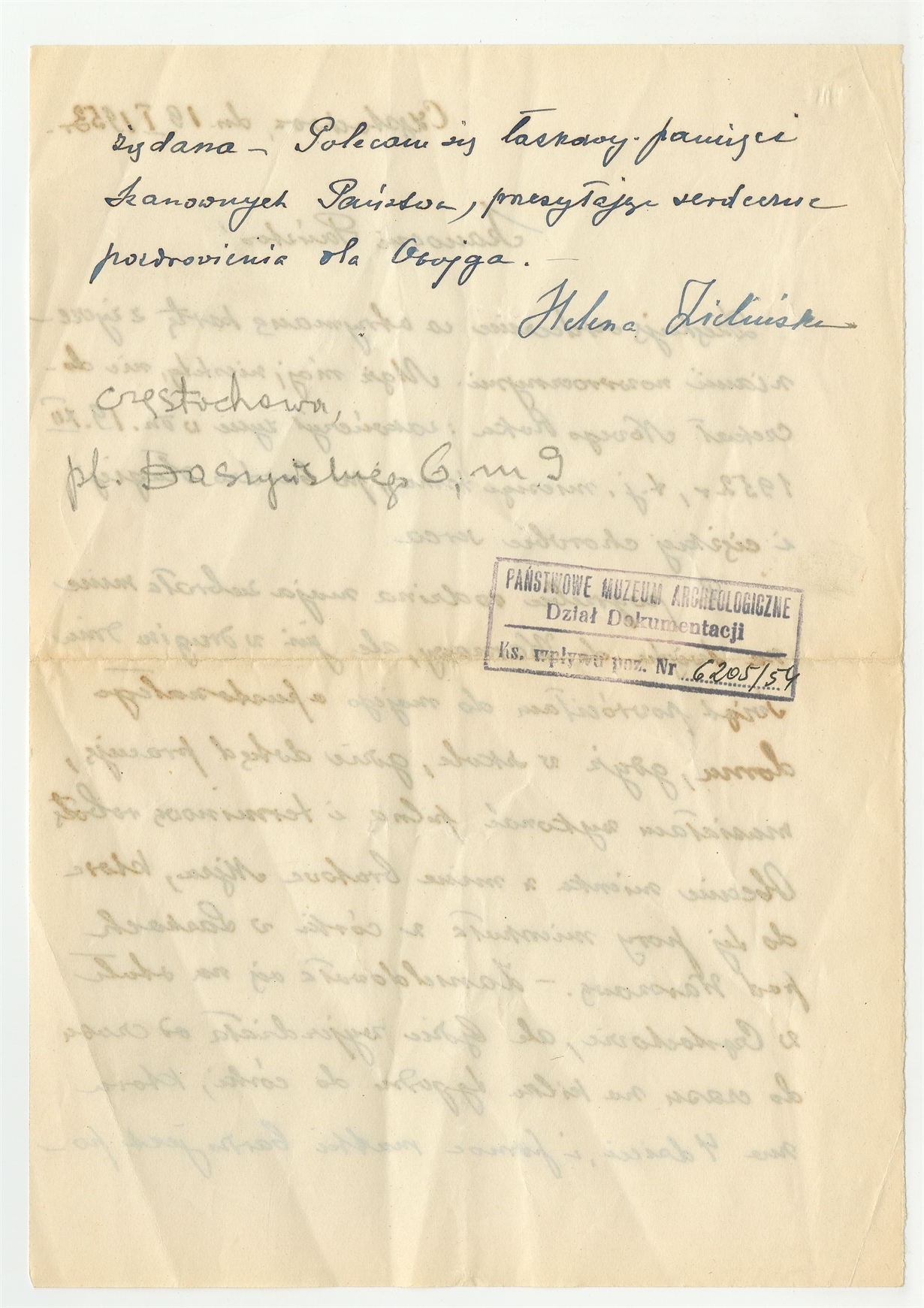 Rękopis - list Heleny Zielińskiej do Stefana Krukowskiego z dnia 19 I 1953 roku (cd)