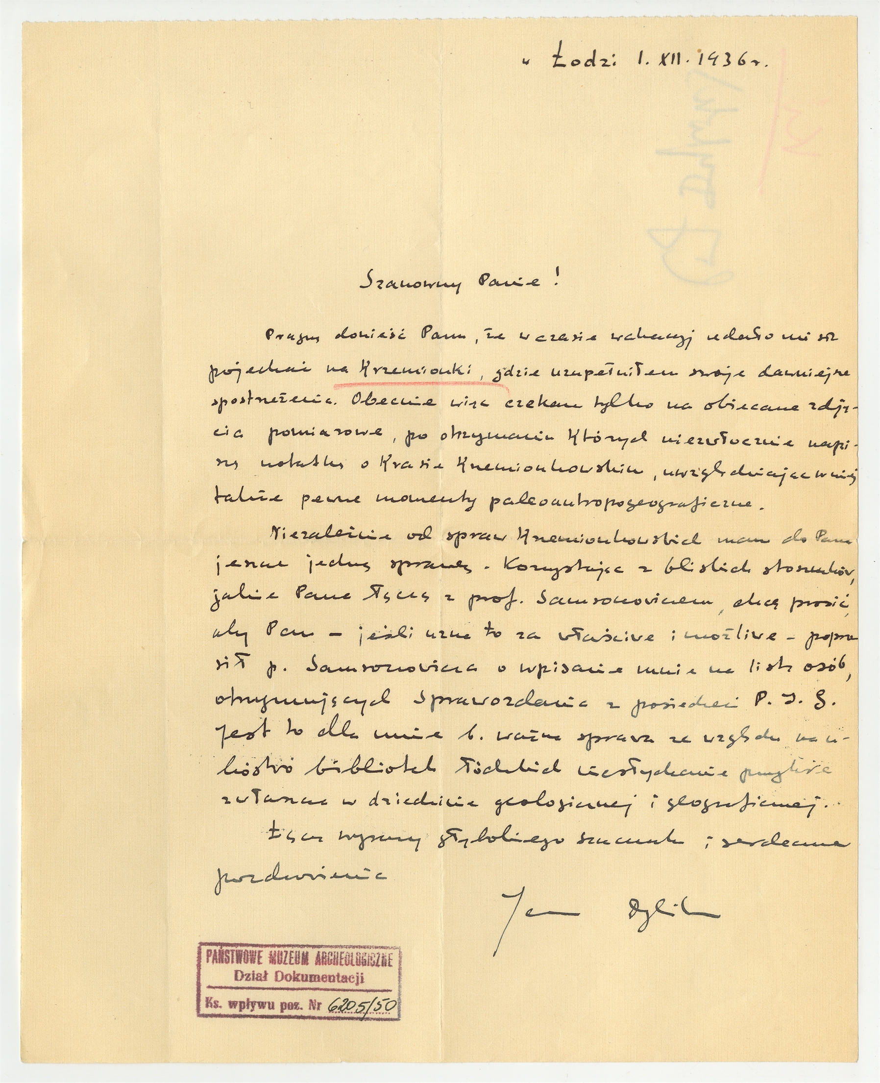 Rękopis - list Jana Dylika do Stefana Krukowskiego z dn. 1 XII 1936 r.