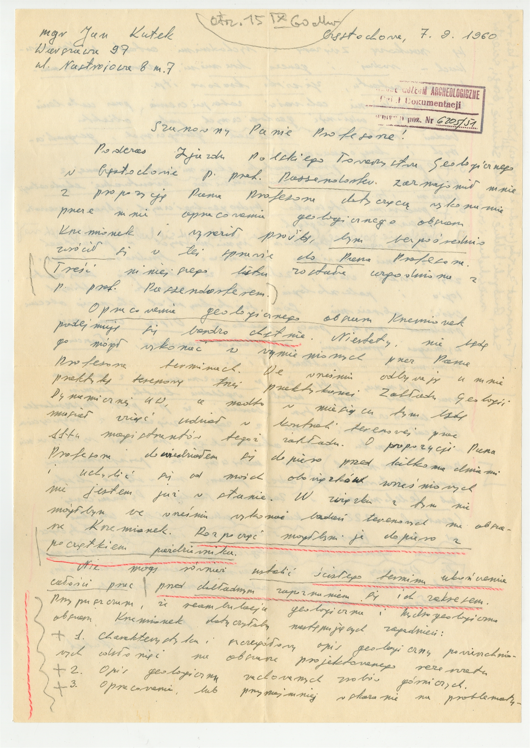 Rękopis - list Jana Kutka do Stefana Krukowskiego z dnia 7.9.1960 roku