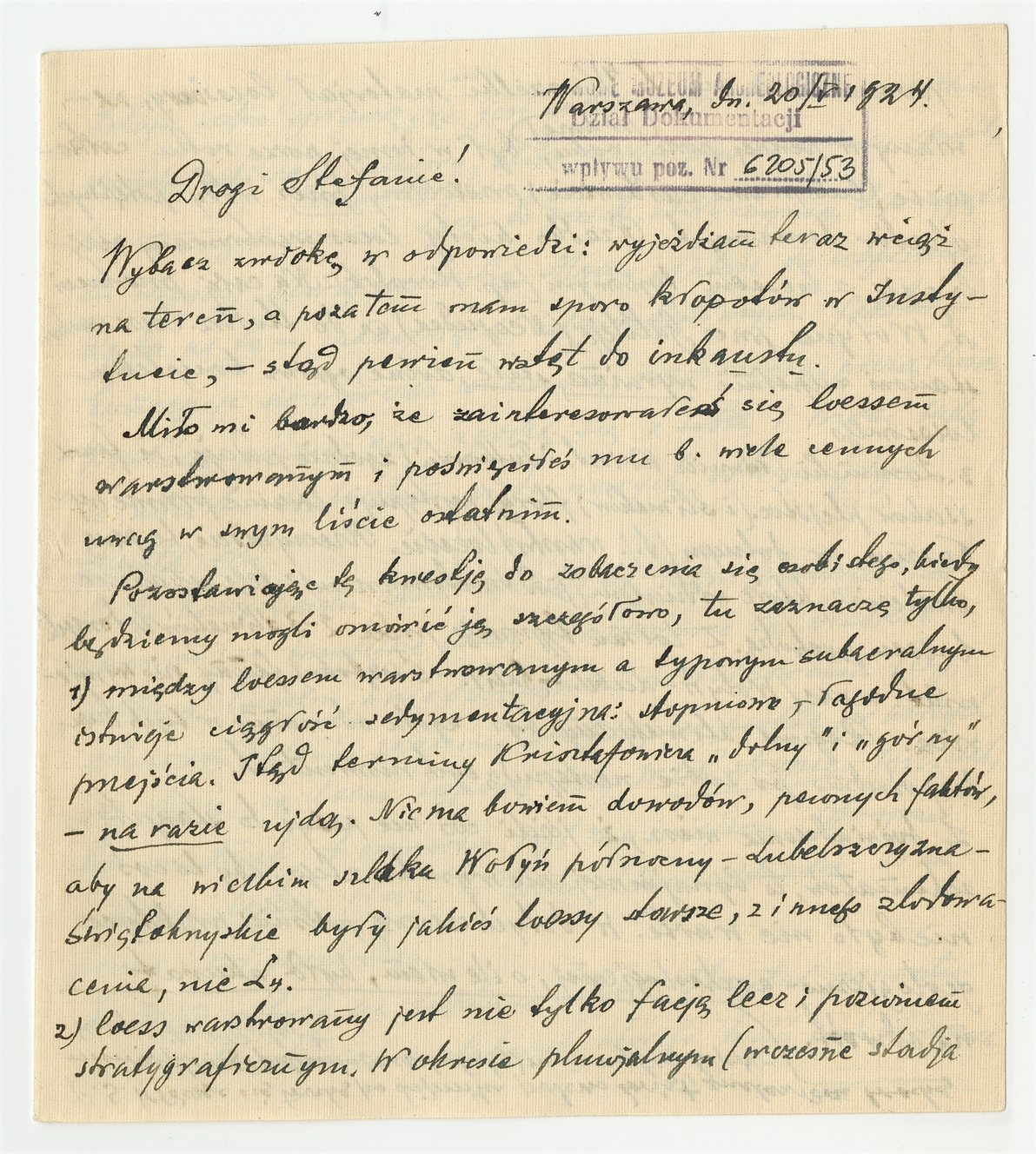 Rękopis - list Jana Samsonowicza do Stefana Krukowskiego z dnia 20 V 1924 roku