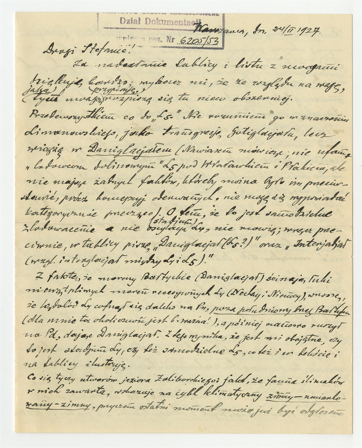 Rękopis - list Jana Samsonowicza do Stefana Krukowskiego z dnia 24 II 1927 roku