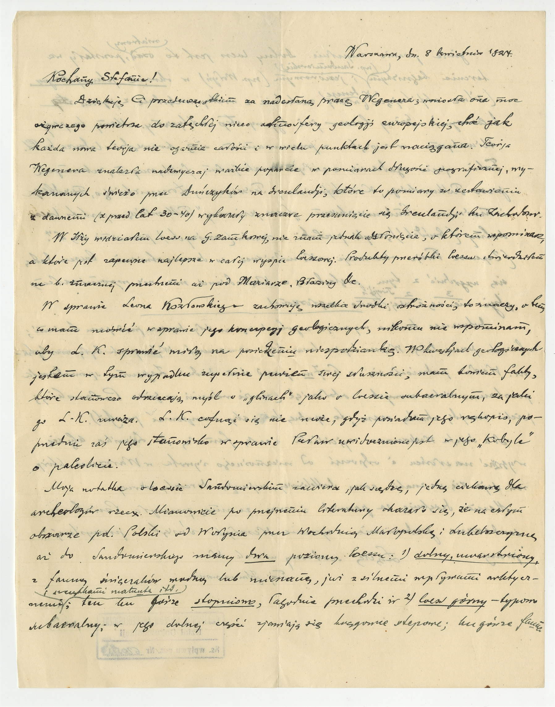 Rękopis - list Jana Samsonowicza do Stefana Krukowskiego z dnia 8 kwietnia 1927 roku