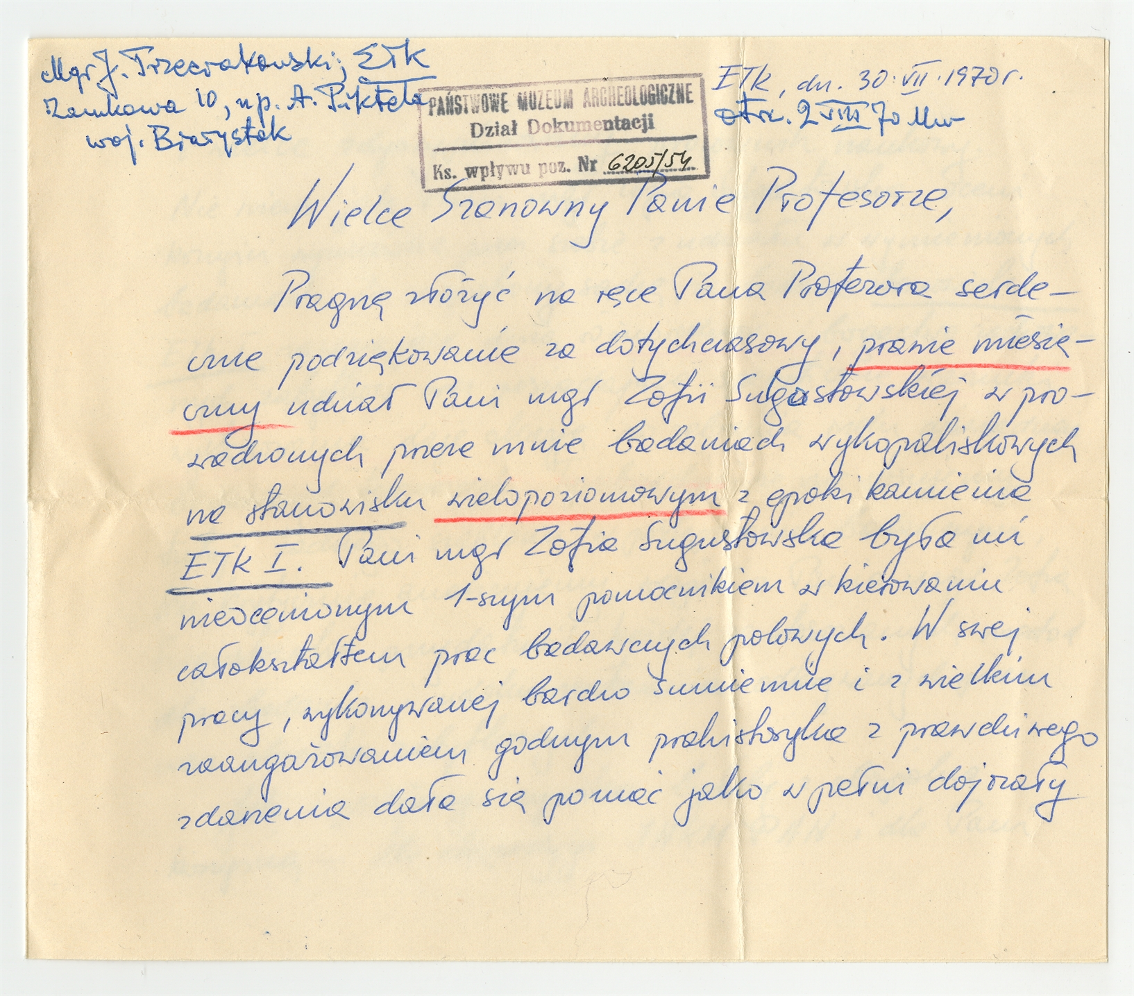 Rękopis - list Jana Trzeciakowskiego do Stefana Krukowskiego z dnia 30 VII 1970 roku