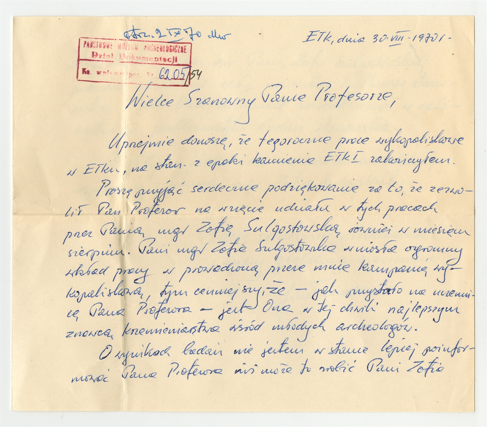 Rękopis - list Jana Trzeciakowskiego do Stefana Krukowskiego z dnia 30 VIII 1970 roku