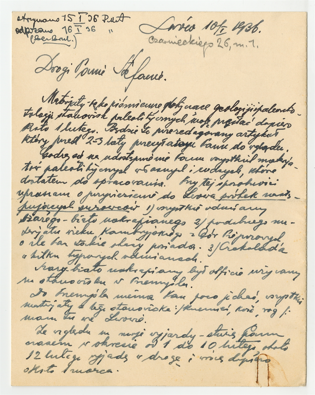 Rękopis - list Jerzego Polańskiego do Stefana Krukowskiego z dnia 10 I 1936 roku