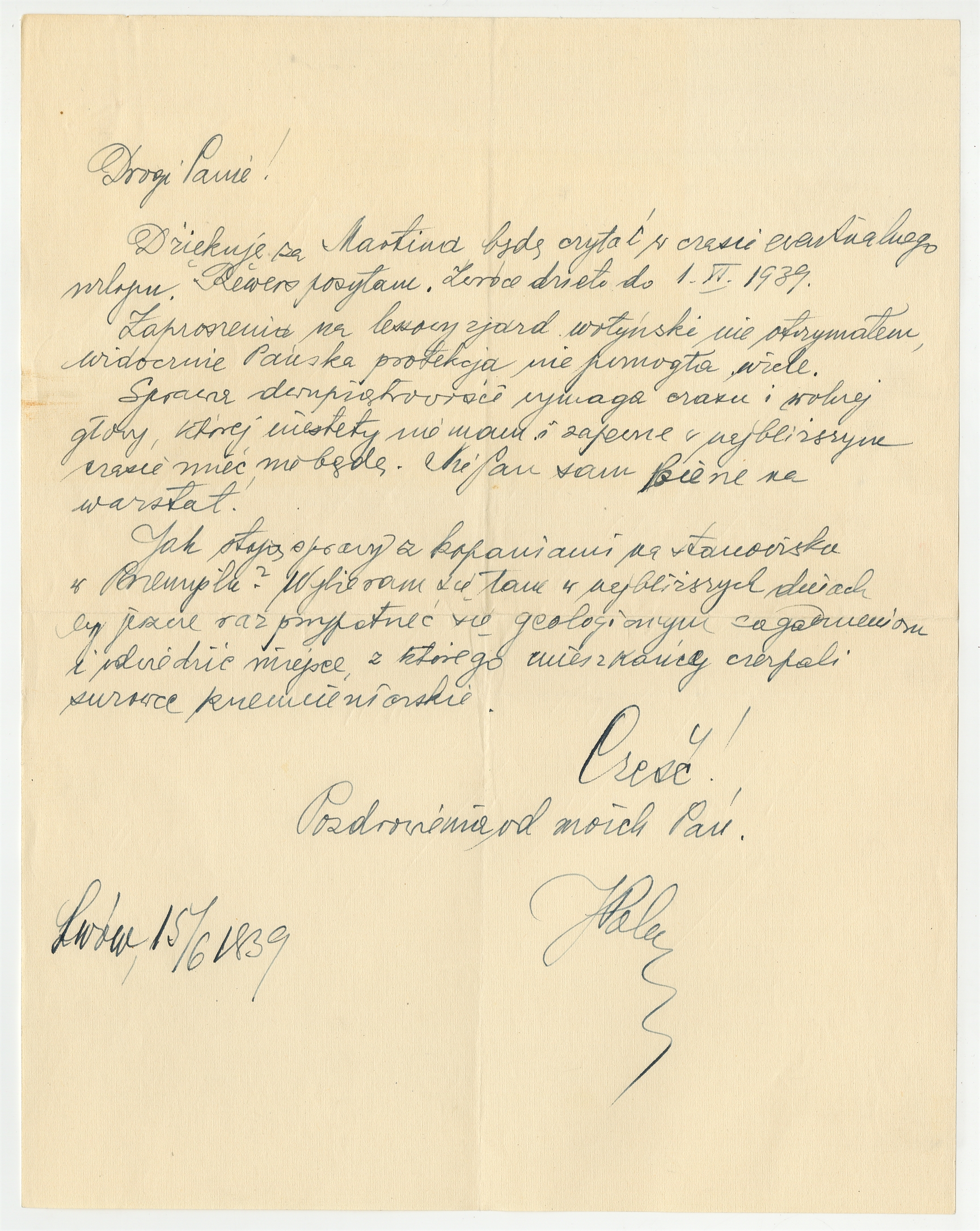 Rękopis - list Jerzego Polańskiego do Stefana Krukowskiego z dnia 15.6.1939 roku