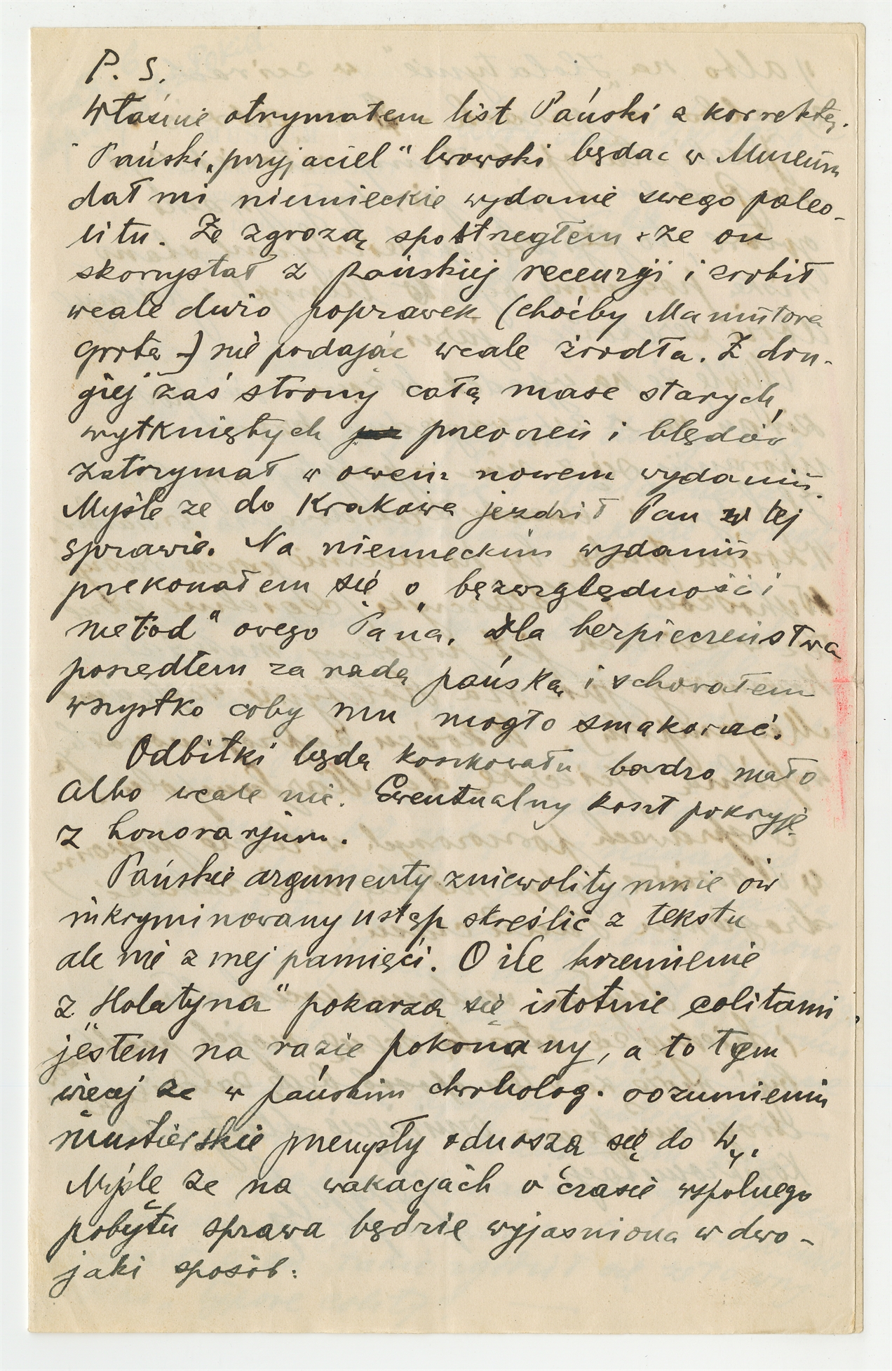 Rękopis - list Jerzego Polańskiego do Stefana Krukowskiego z dnia 19 VI 1926 roku (cd)