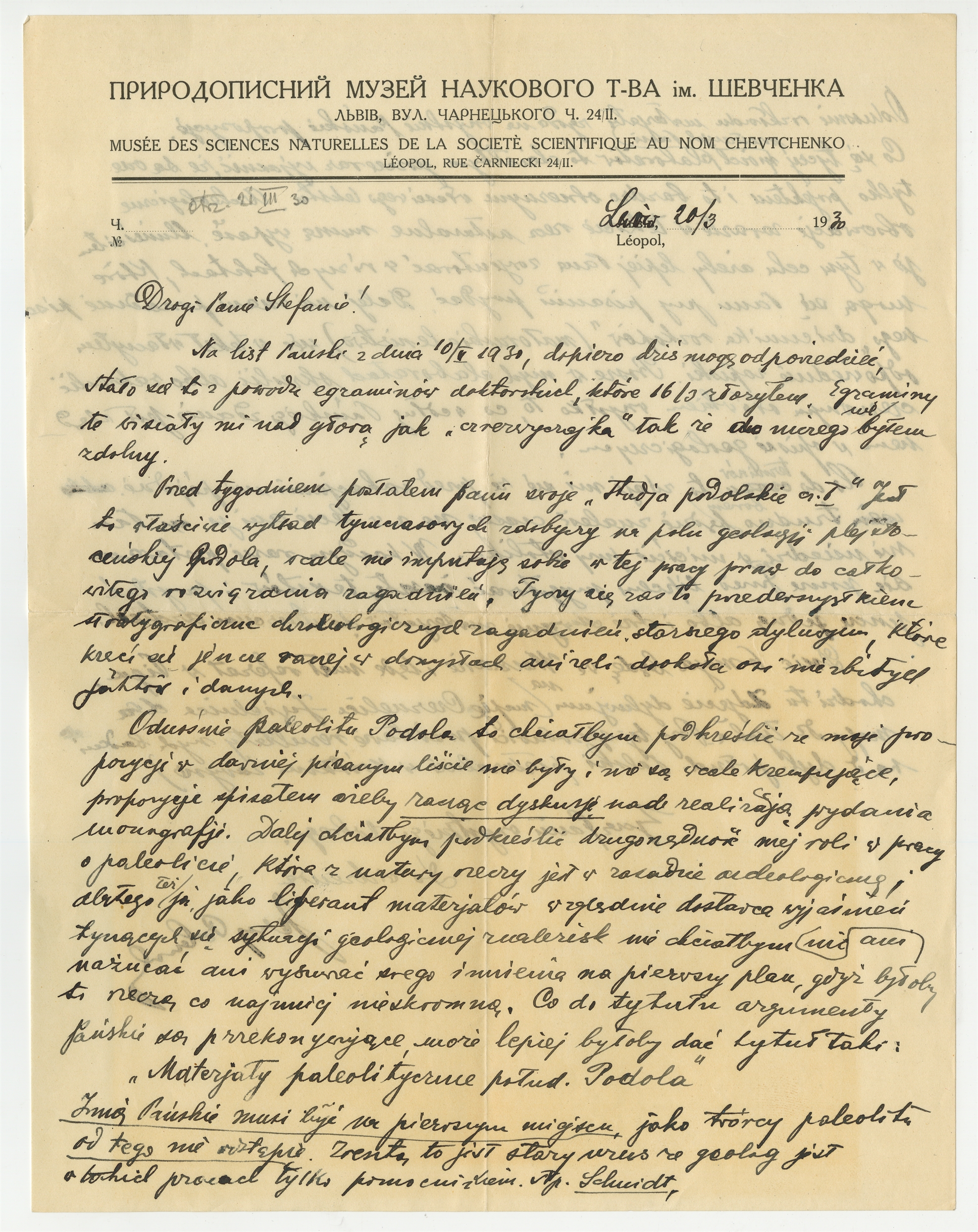 Rękopis - list Jerzego Polańskiego do Stefana Krukowskiego z dnia 20.3.1930 roku