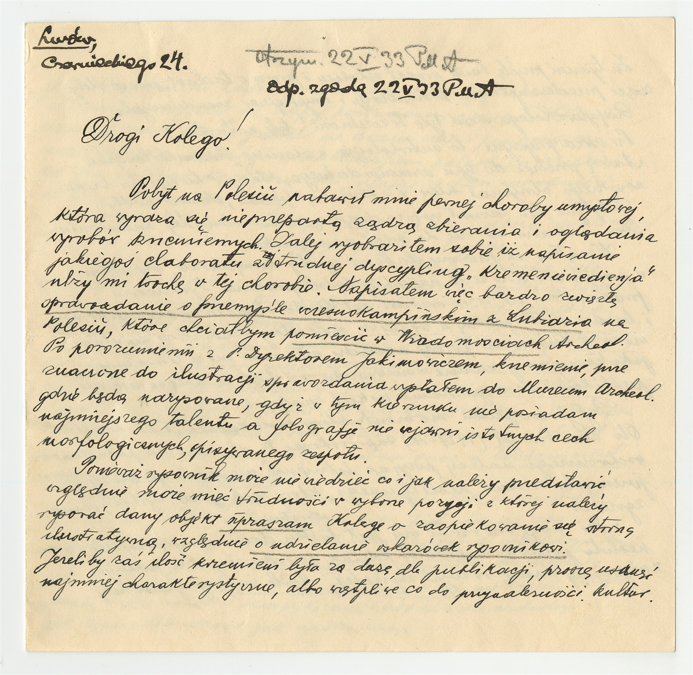 Rękopis - list Jerzego Polańskiego do Stefana Krukowskiego z dnia 20 maja 1933 roku