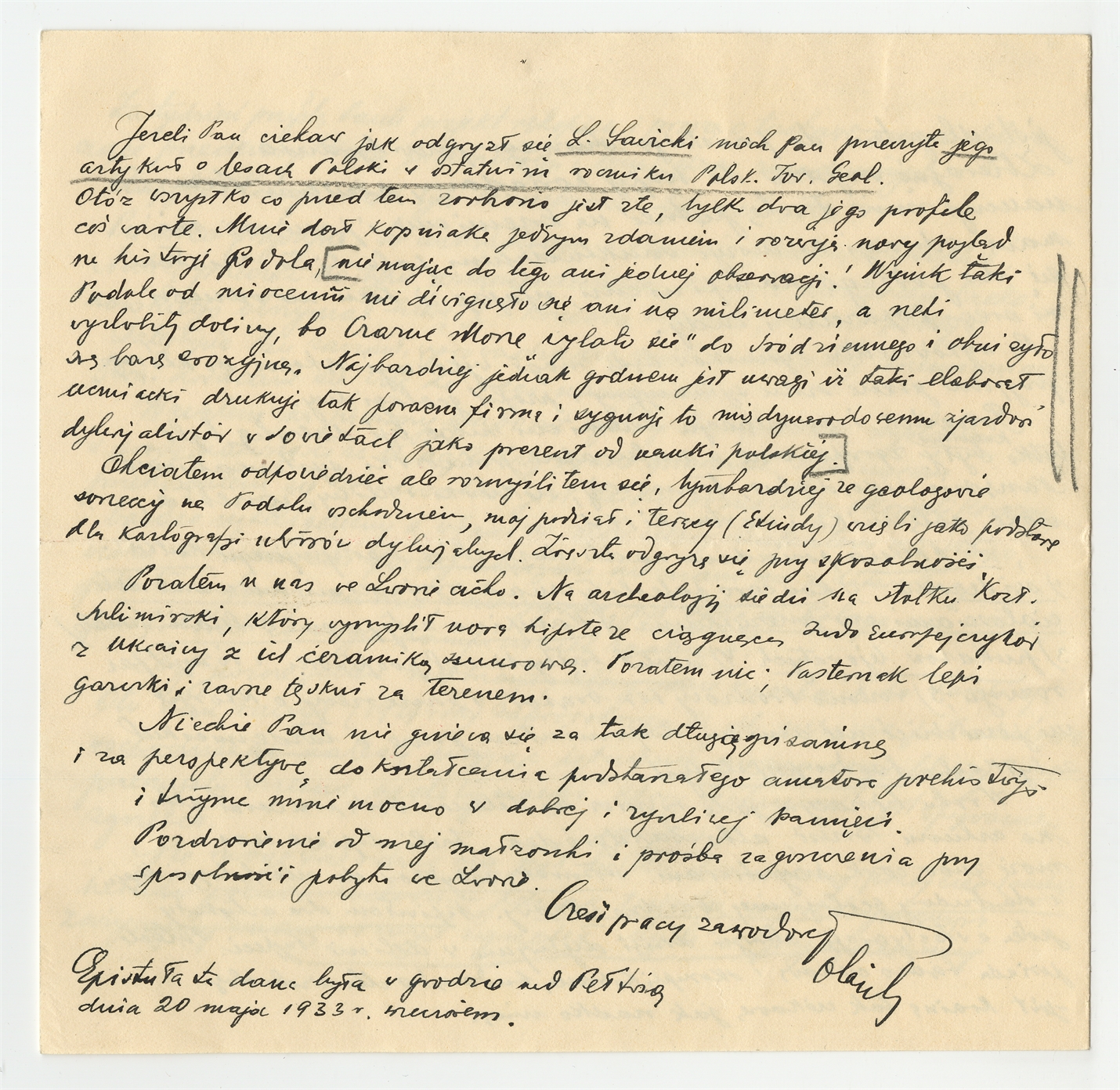 Rękopis - list Jerzego Polańskiego do Stefana Krukowskiego z dnia 20 maja 1933 roku (cd)