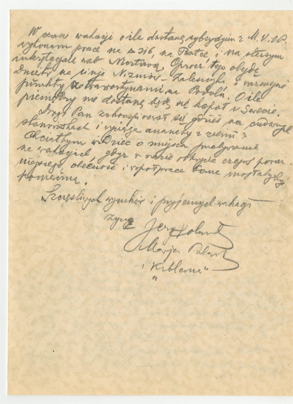 Rękopis - list Jerzego Polańskiego do Stefana Krukowskiego z dnia 26 VI 1928 roku (cd)