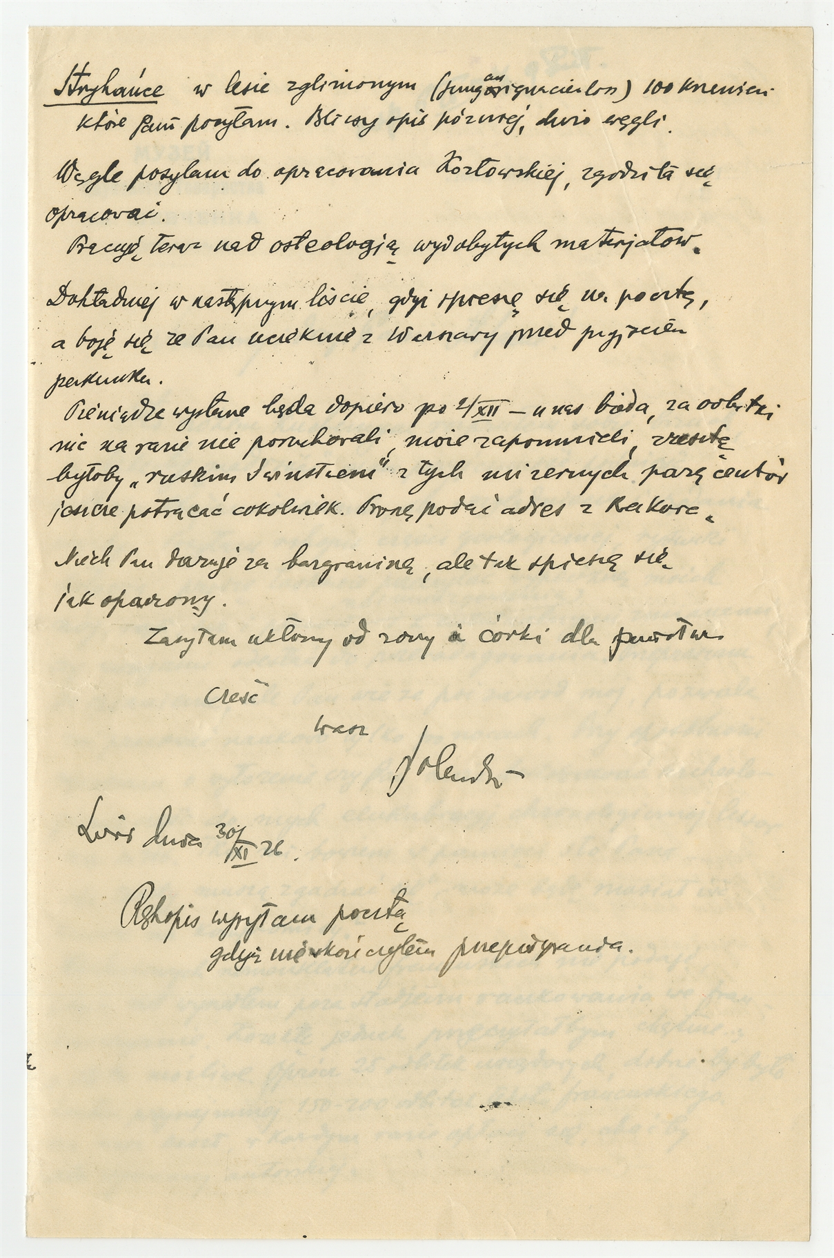 Rękopis - list Jerzego Polańskiego do Stefana Krukowskiego z dnia 30 XI [19]26 roku (cd)