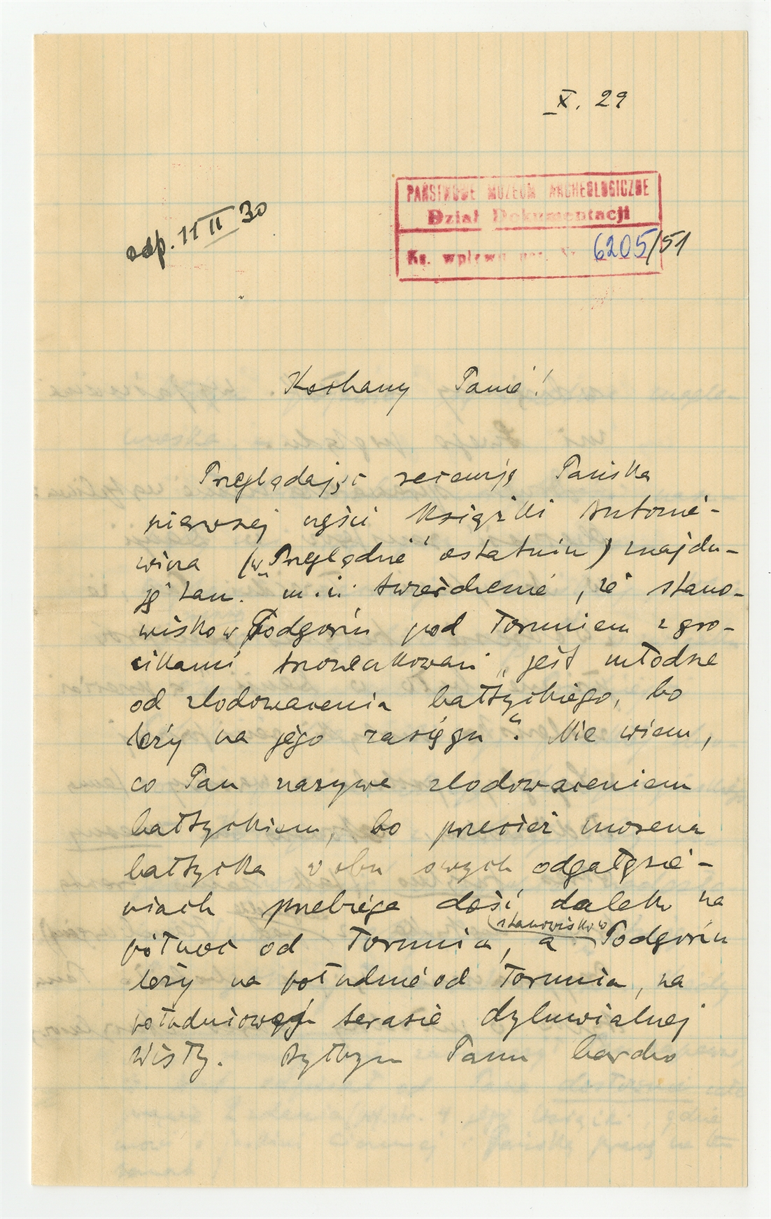 Rękopis - list Józefa Kostrzewskiego do Stefana Krukowskiego z X [19]29 roku