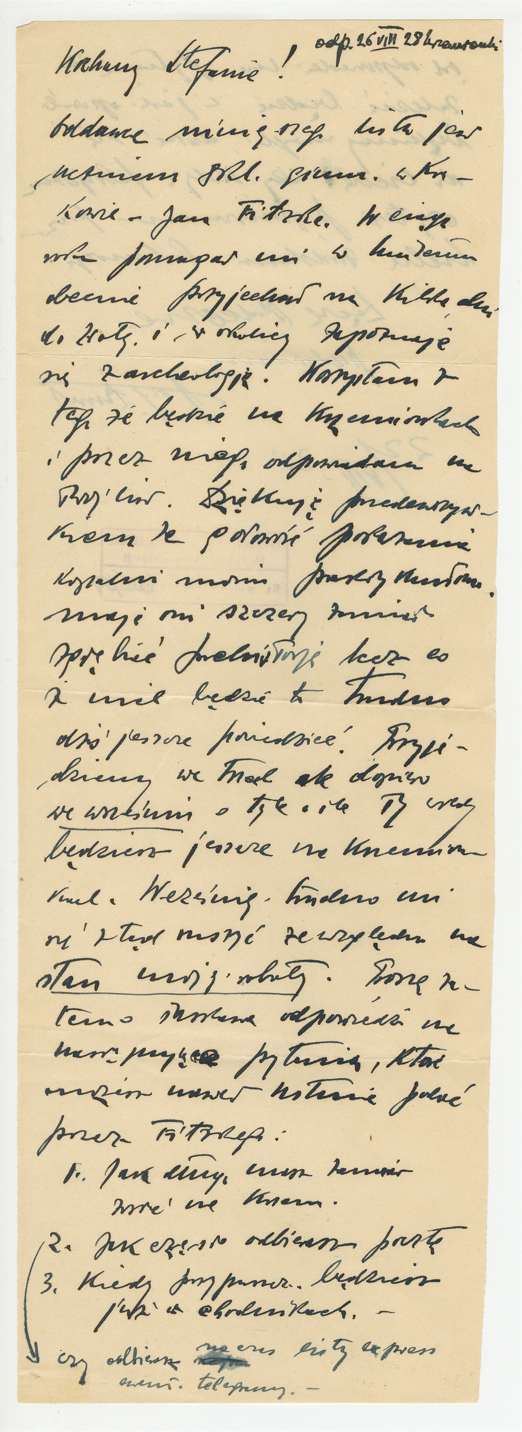 Rękopis - list Józefa Żurowskiego do Stefana Krukowskiego z dnia 22 VIII 1928 roku