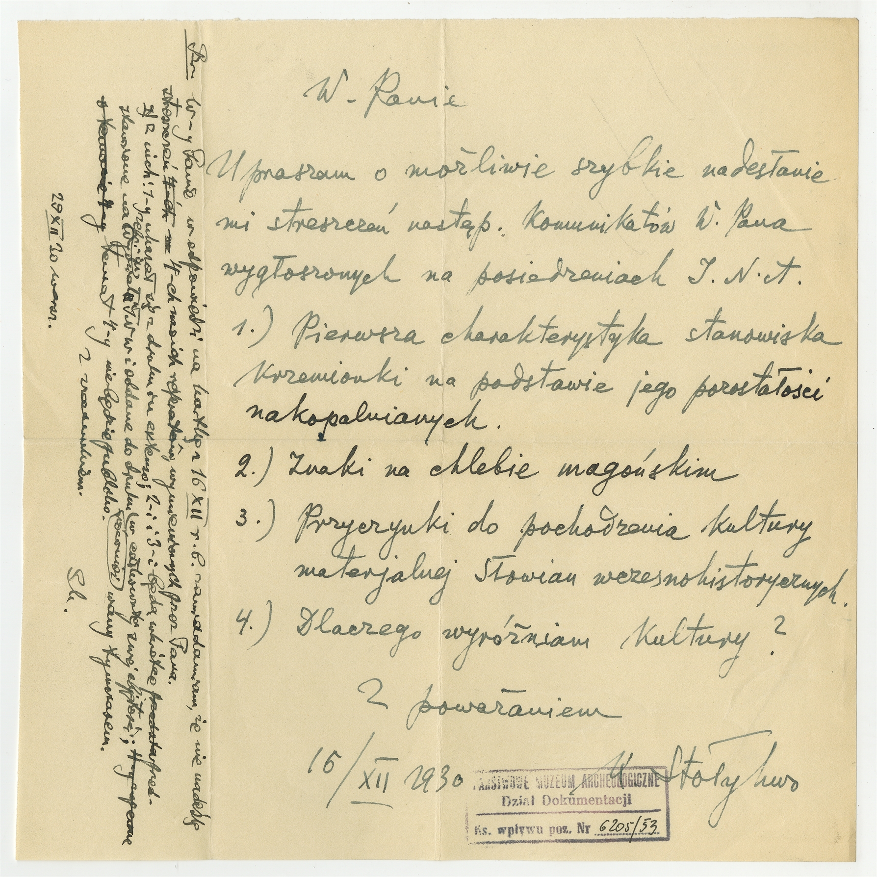 Rękopis - list Kazimierza Stołyhwo do Stefana Krukowskiego z dnia 16 XII 1930 roku. Rękopis - brudnopis odpowiedzi Stefana Krukowskiego z dnia 29 XII 1930 roku na list.