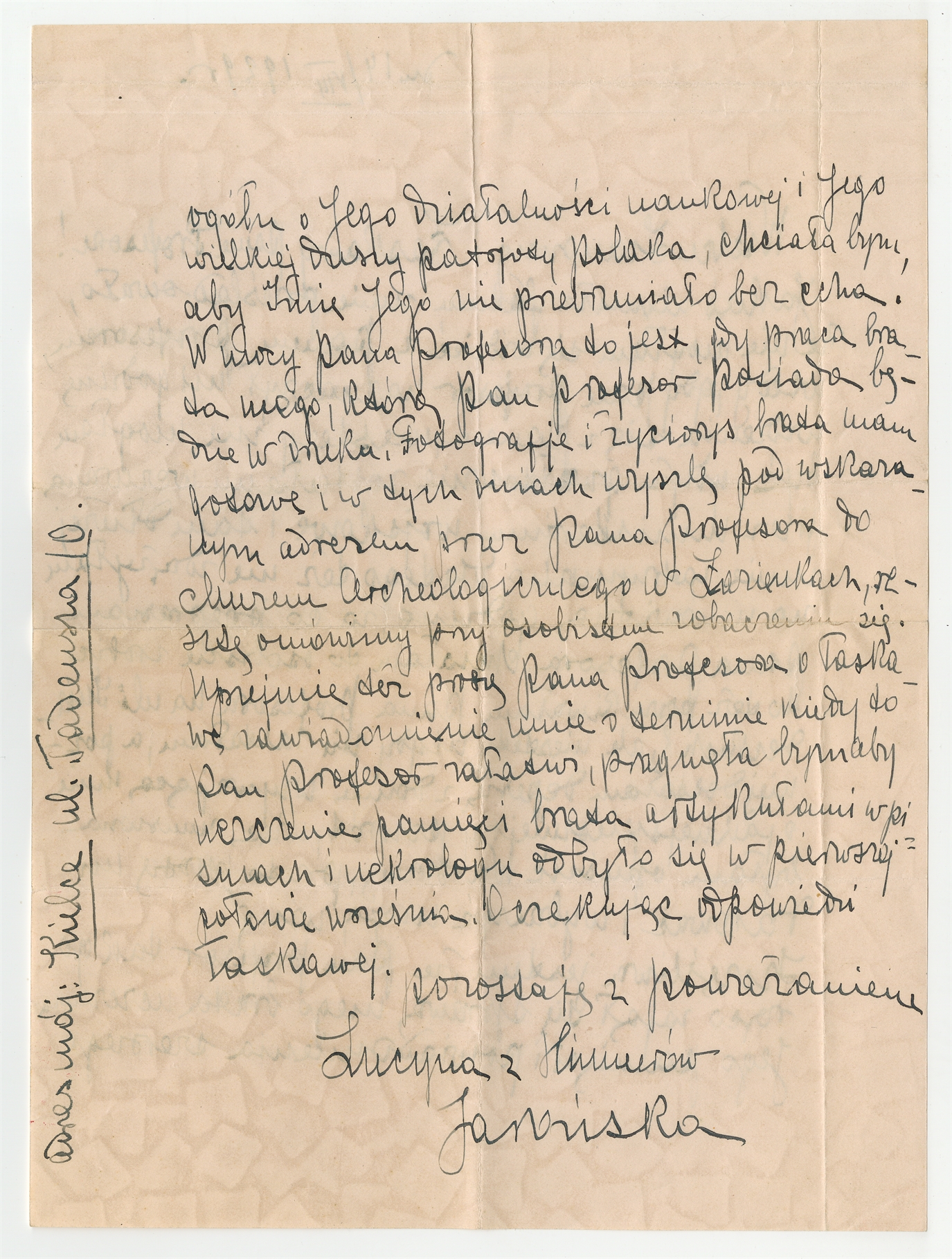Rękopis - list Lucyny z Himnerów Jarońskiej do Stefana Krukowskiego z dnia 14 VIII 1929 roku (cd)