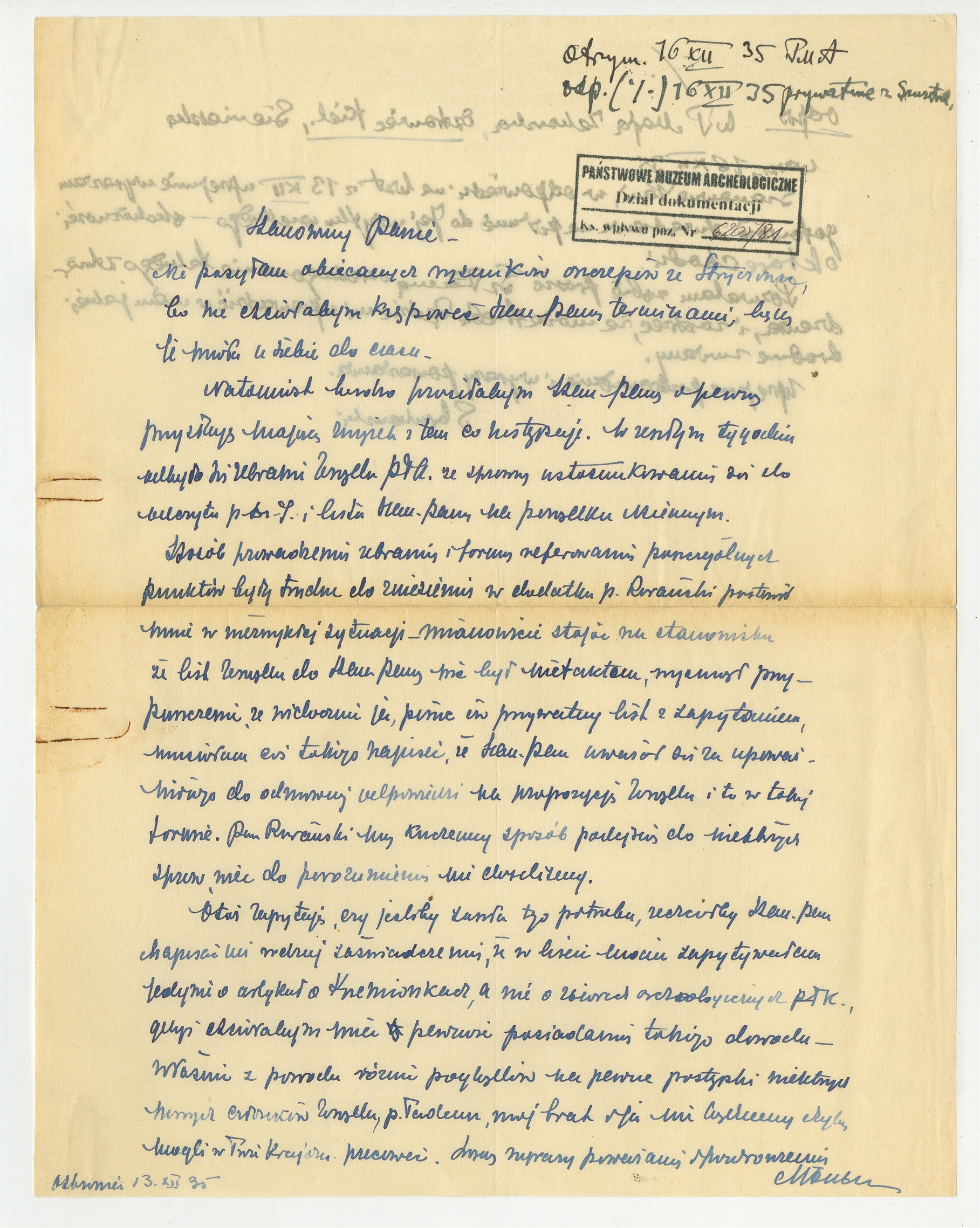 Rękopis - list Marii Żakowskiej do Stefana Krukowskiego z dnia 13 XII [19]35 roku