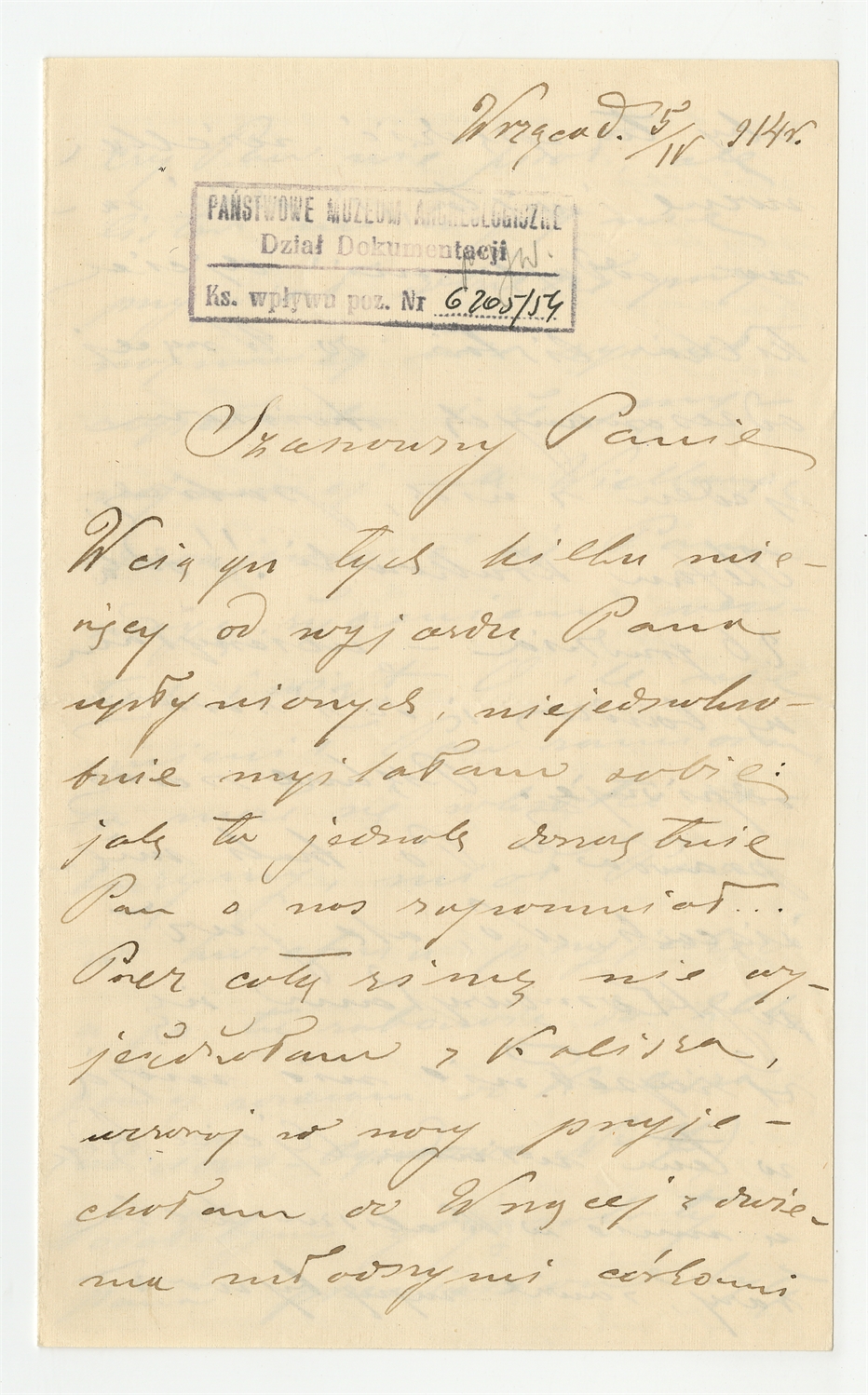 Rękopis - list NN (podpis nieczytelny) do Stefana Krukowskiego z dnia 5 IV [1]914 roku napisany w miejscowosci Wrząca