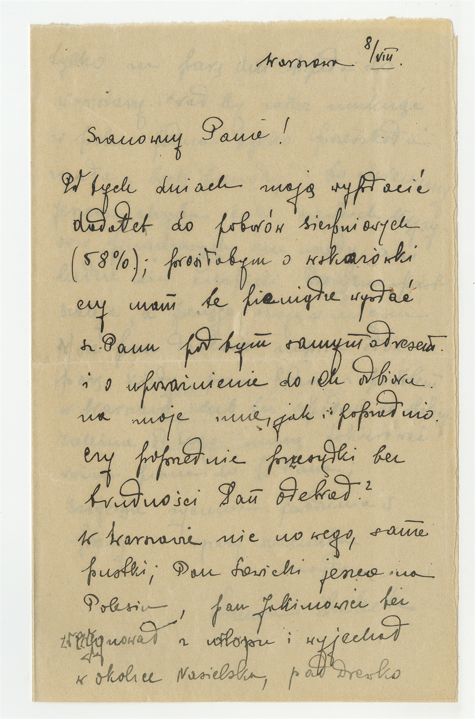 Rękopis - list NN (podpis nieczytelny) z Warszawy do Stefana Krukowskiego z dnia 8 VIII