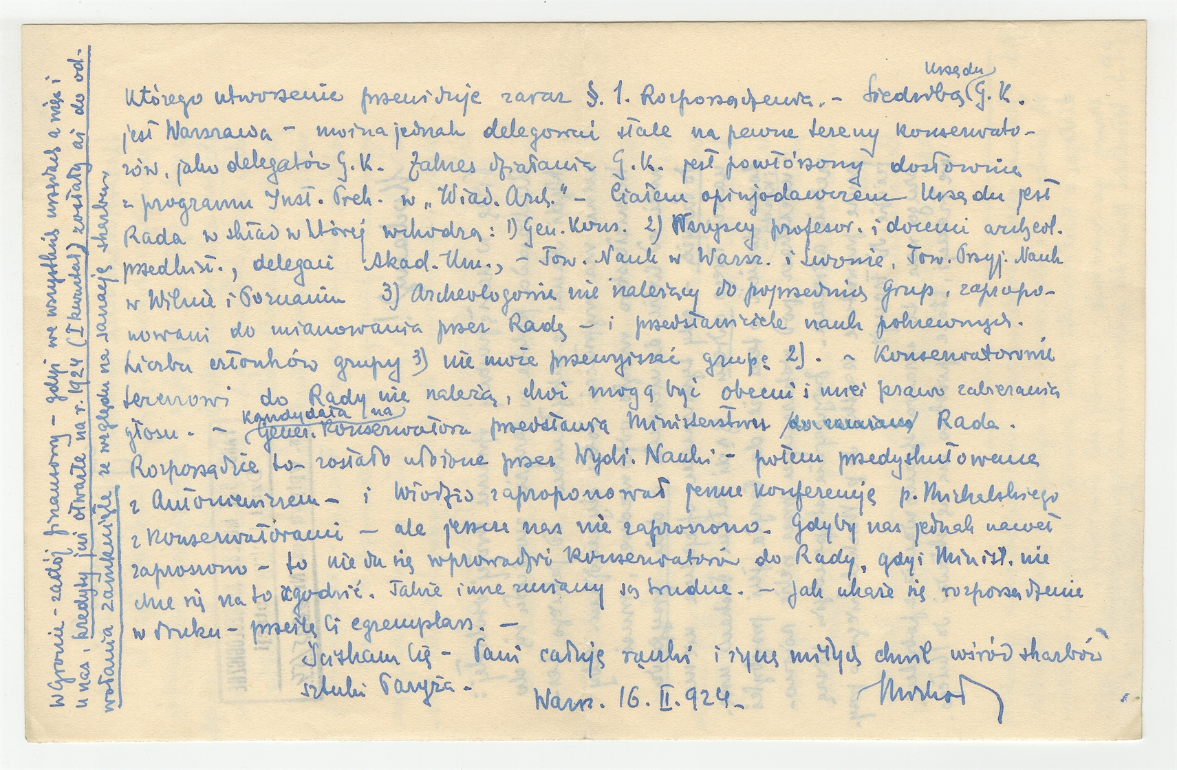 Rękopis - list od NN (podpis nieczytelny) z Warszawy do Stefana Krukowskiego z dnia 16 II [1]924 roku