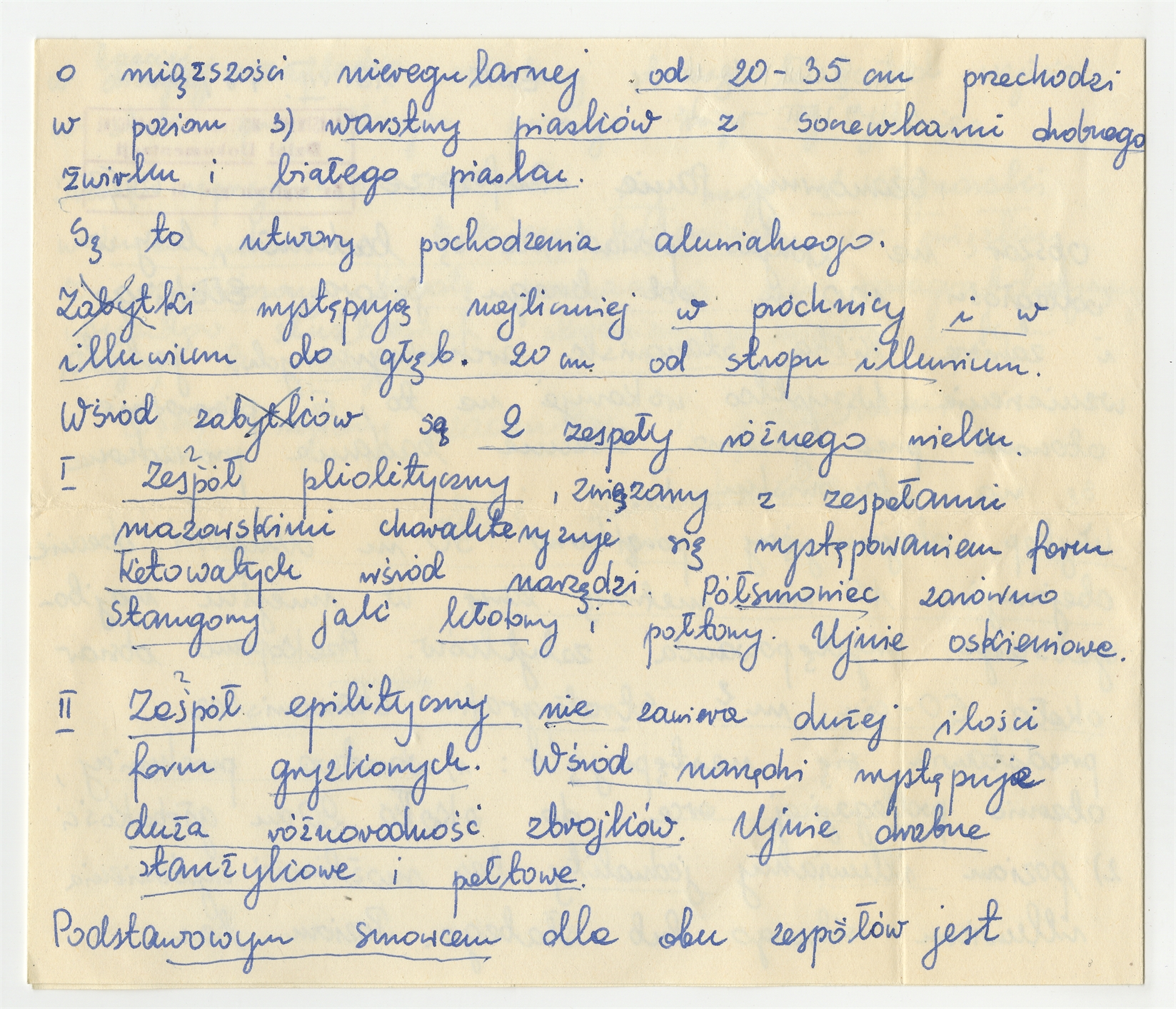 Rękopis – list od Zofii Sulgostowskiej do profesora Stefana Krukowskiego informujący o postępach w pracach wykopaliskowych. Ełk 16 lipca 1970 r. str. 2: „od miąższości nieregularnej od 20 – 35 cm (...)”