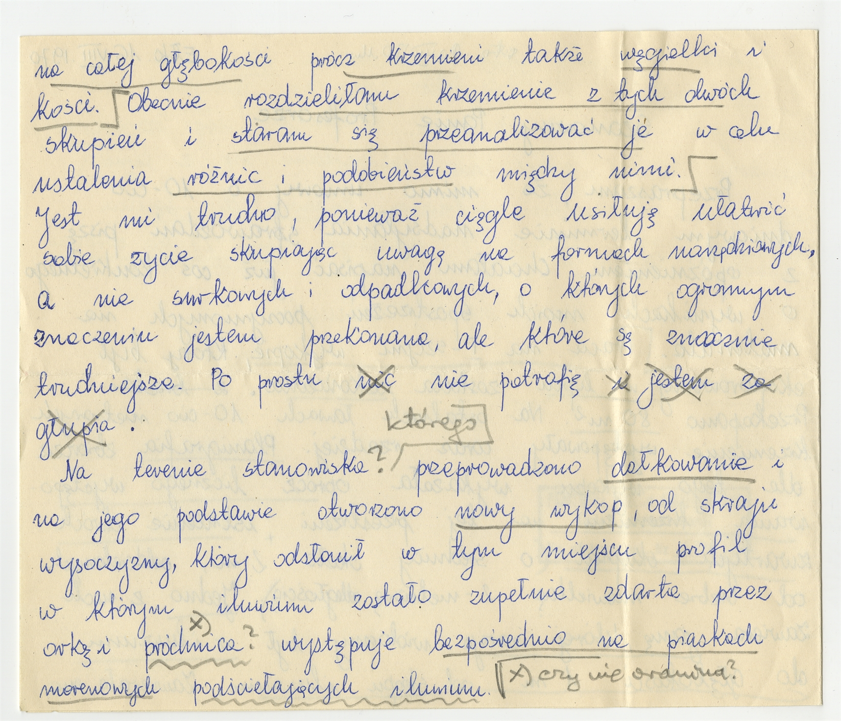 Rękopis – list od Zofii Sulgostowskiej do profesora Stefana Krukowskiego informujący o postępach w pracach wykopaliskowych. Ełk 16 sierpnia 1970 r. str. 2: „Na całej głębokości prócz krzemieni także węgielki i kości (...)”