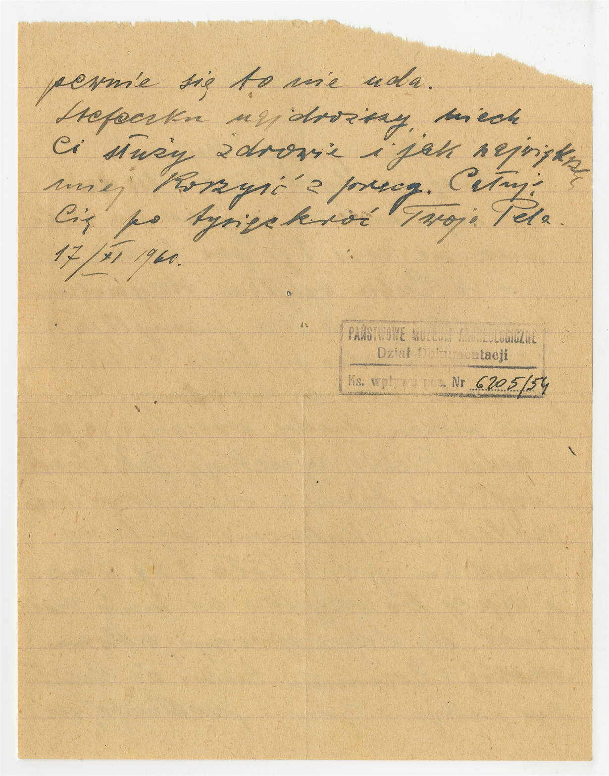 Rękopis - list Pelagii Krukowskiej do Stafana Krukowskiego z dnia 17 XI 1960 roku (cd)