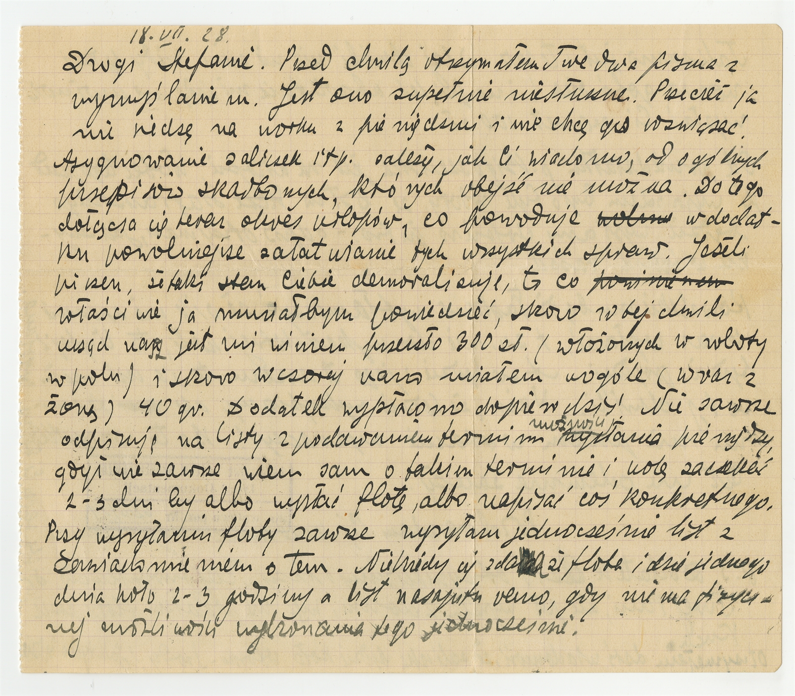 Rękopis - list Romana Jakimowicza do Stefana Krukowskiego z dnia 18 VII [19]28 roku