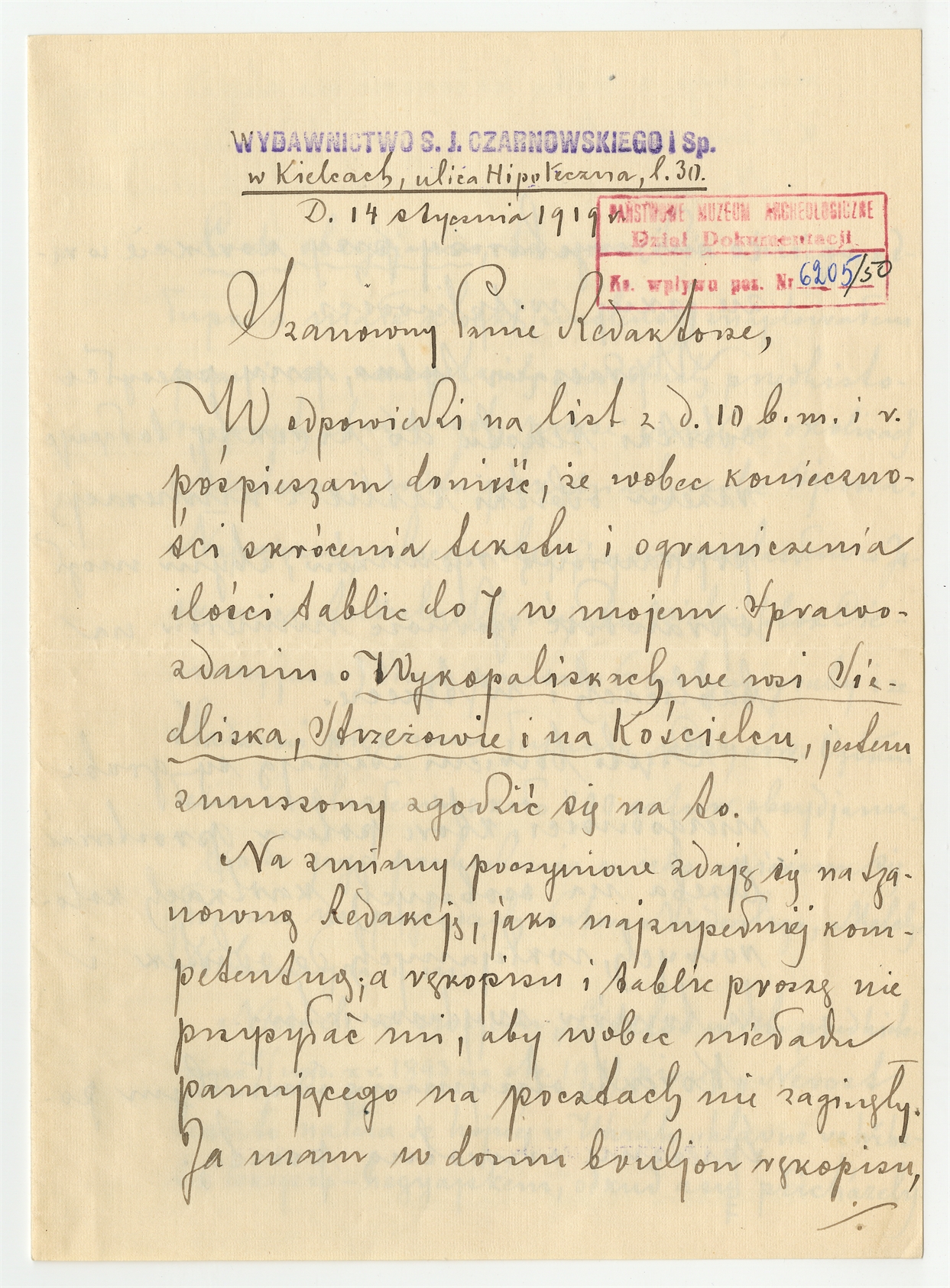 Rękopis - list S. J. Czarnowskiego do Stefana Krukowskiego z dn. 14 I 1919 r.