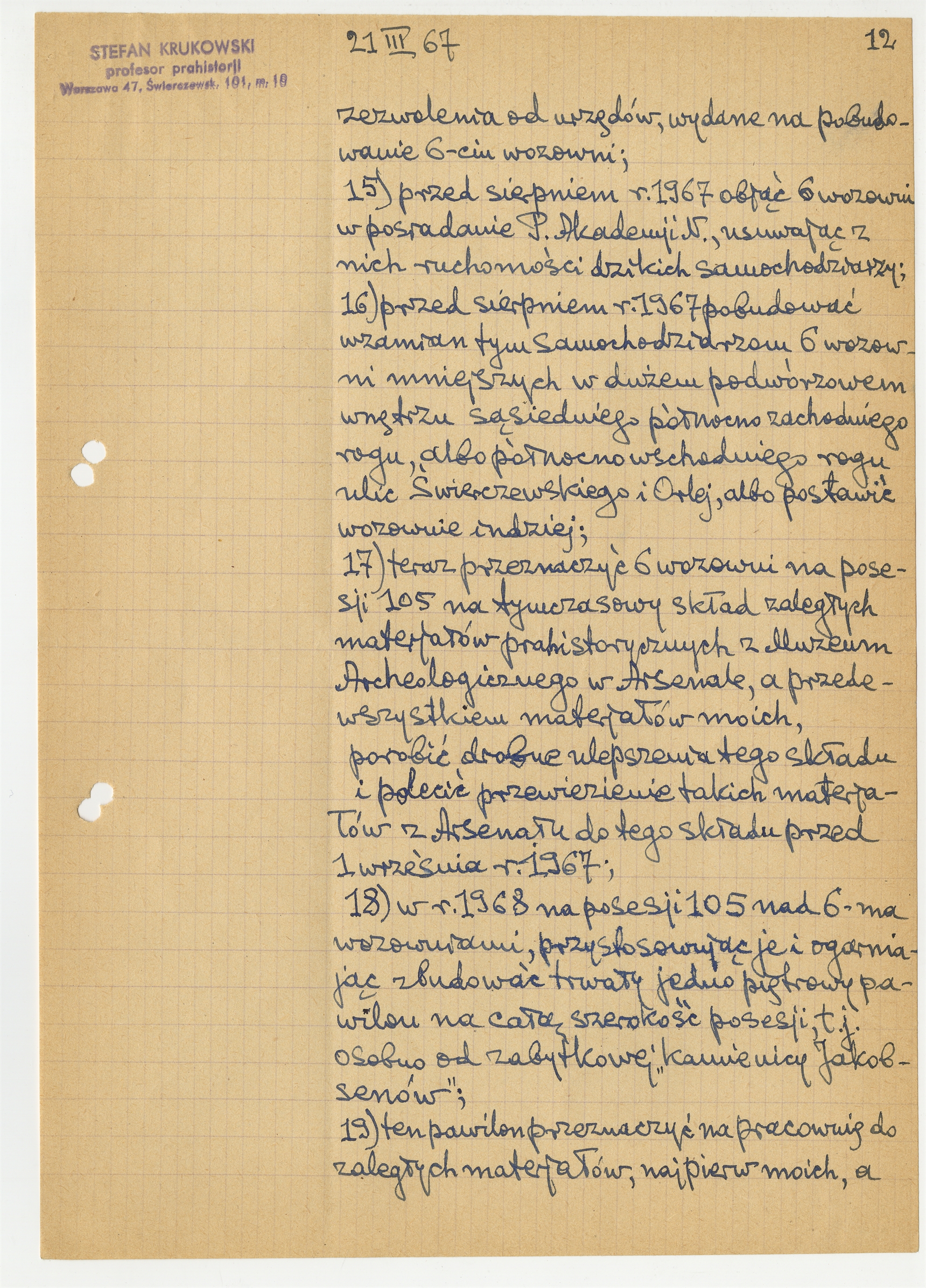 Rękopis - list S. Krukowskiego do W. Nowackiego Sekretarza Naukowego PAN z dn. 21 III 1967 r. Strona 12