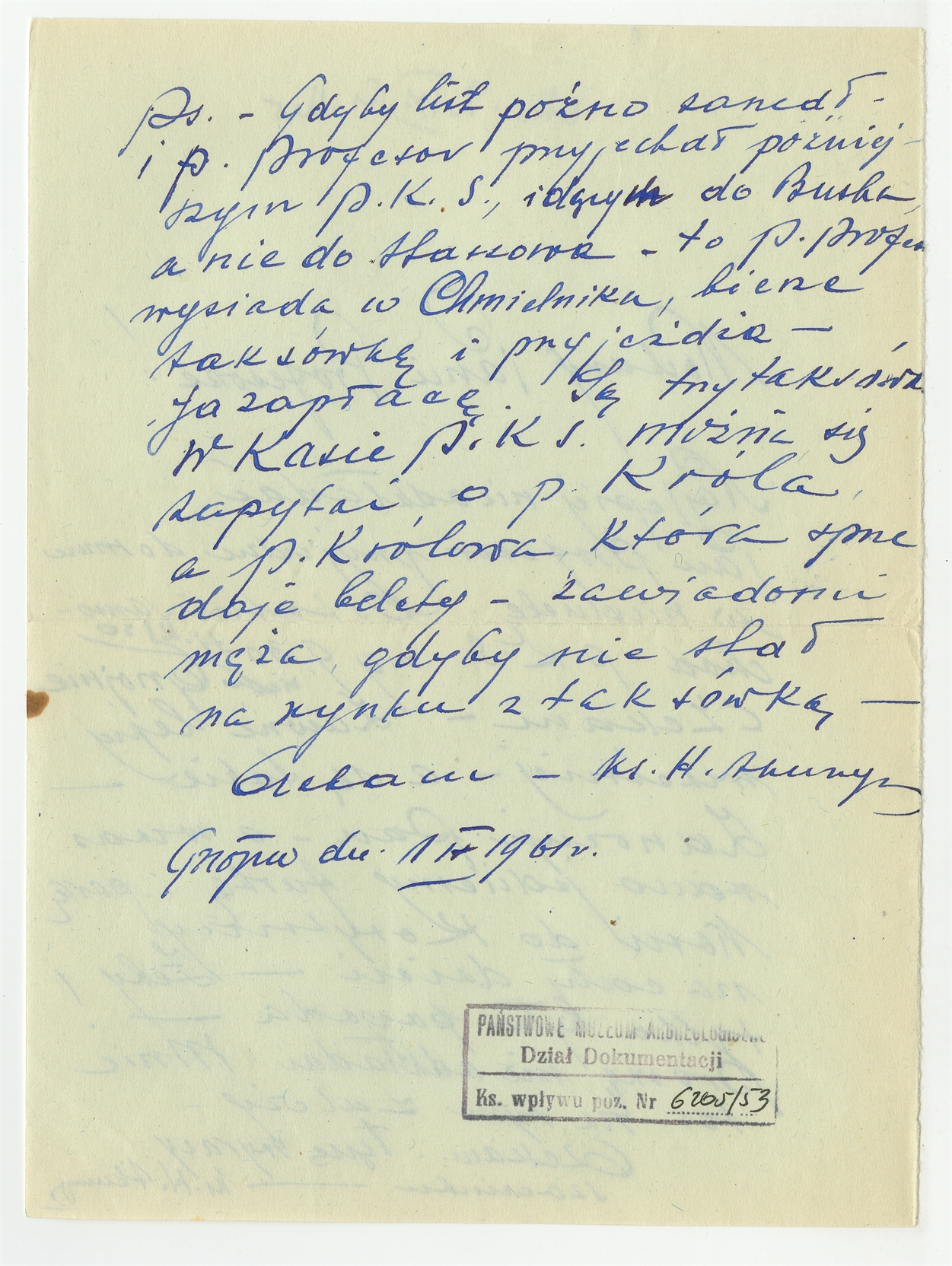 Rękopis - list Stanisława Skurczyńskiego do Stefana Krukowskiego z dnia 1 IX 1961 roku (cd)