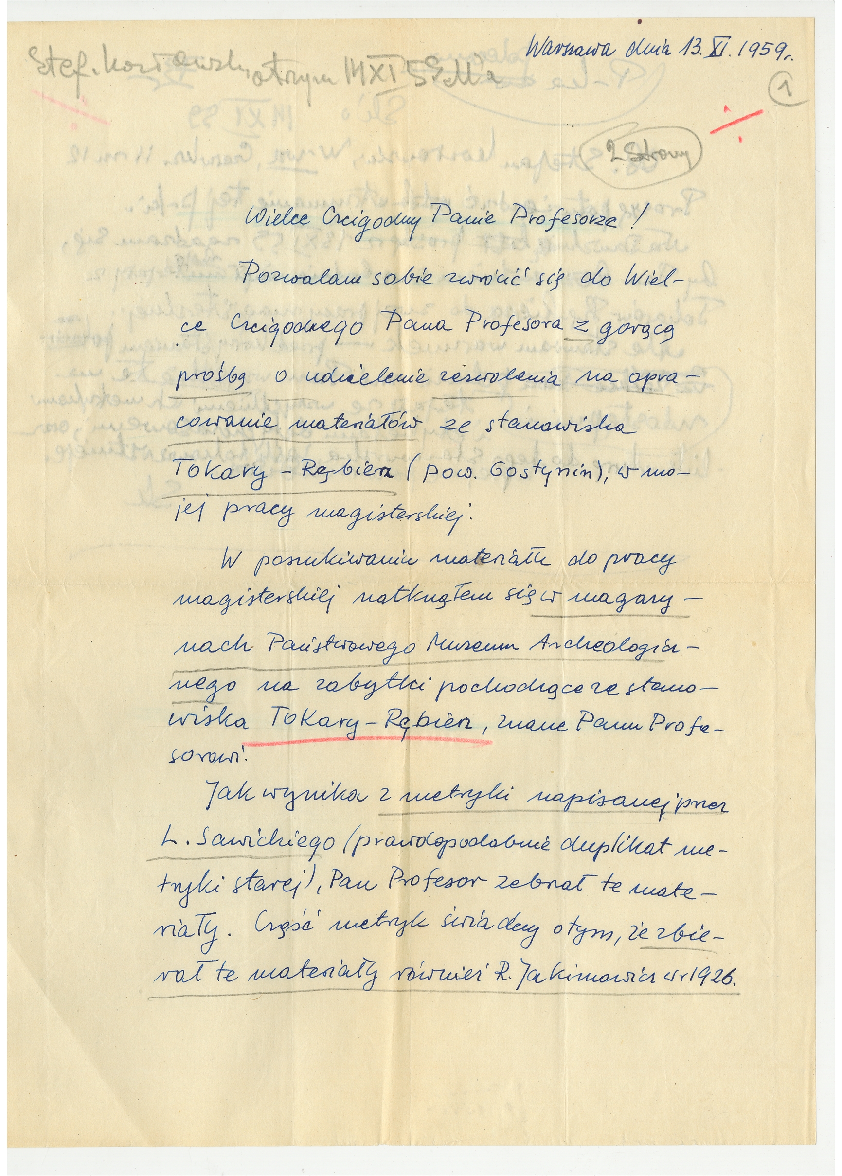 Rękopis - list Stefana Kozłowskiego do Stefana Krukowskiego z dnia 13 XI 1959 roku