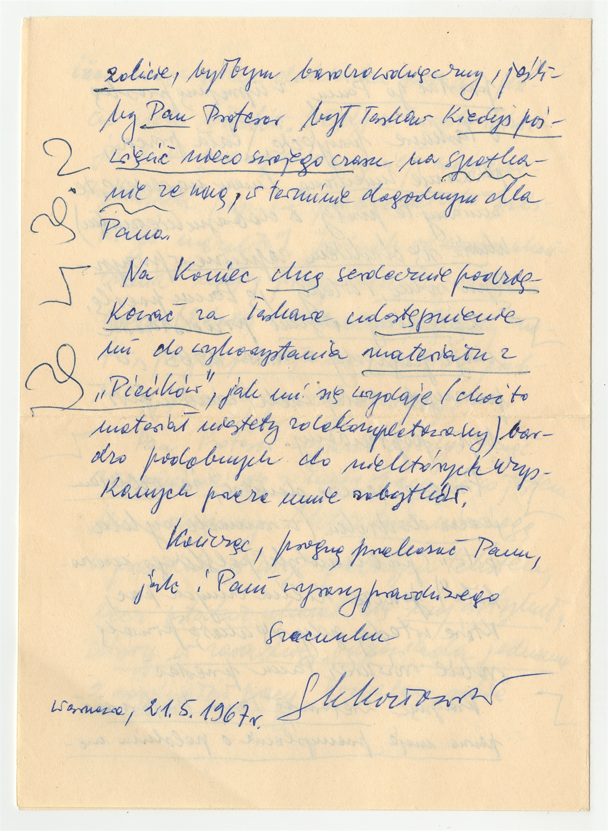 Rękopis - list Stefana Kozłowskiego do Stefana Krukowskiego z dnia 21.5.1967 roku (cd)