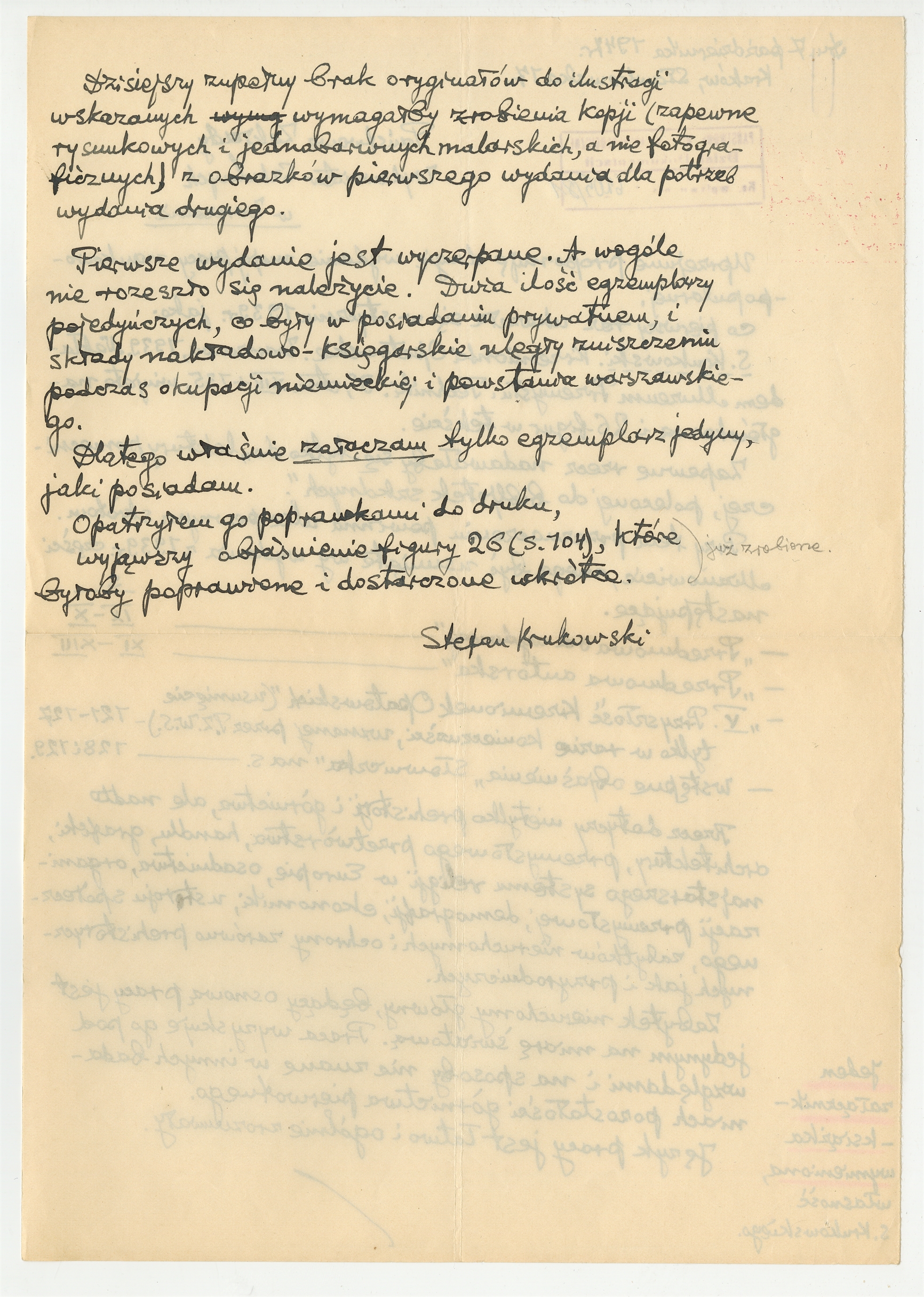 Rękopis - list Stefana Krukowskiego do Państwowych Zakładów Wydawnictw Szkolnych z dnia 7 października 1947 roku (cd)