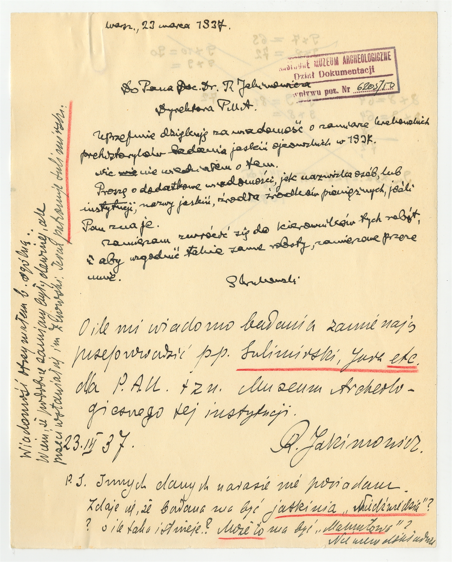 Rękopis - list Stefana Krukowskiego do Romana Jakimowicza z dn. 23 III 1937 r.; w odpowiedzi rękopis Romana Jakimowicza do Stefana Krukowskiego z dn. 23 III 1937 r.