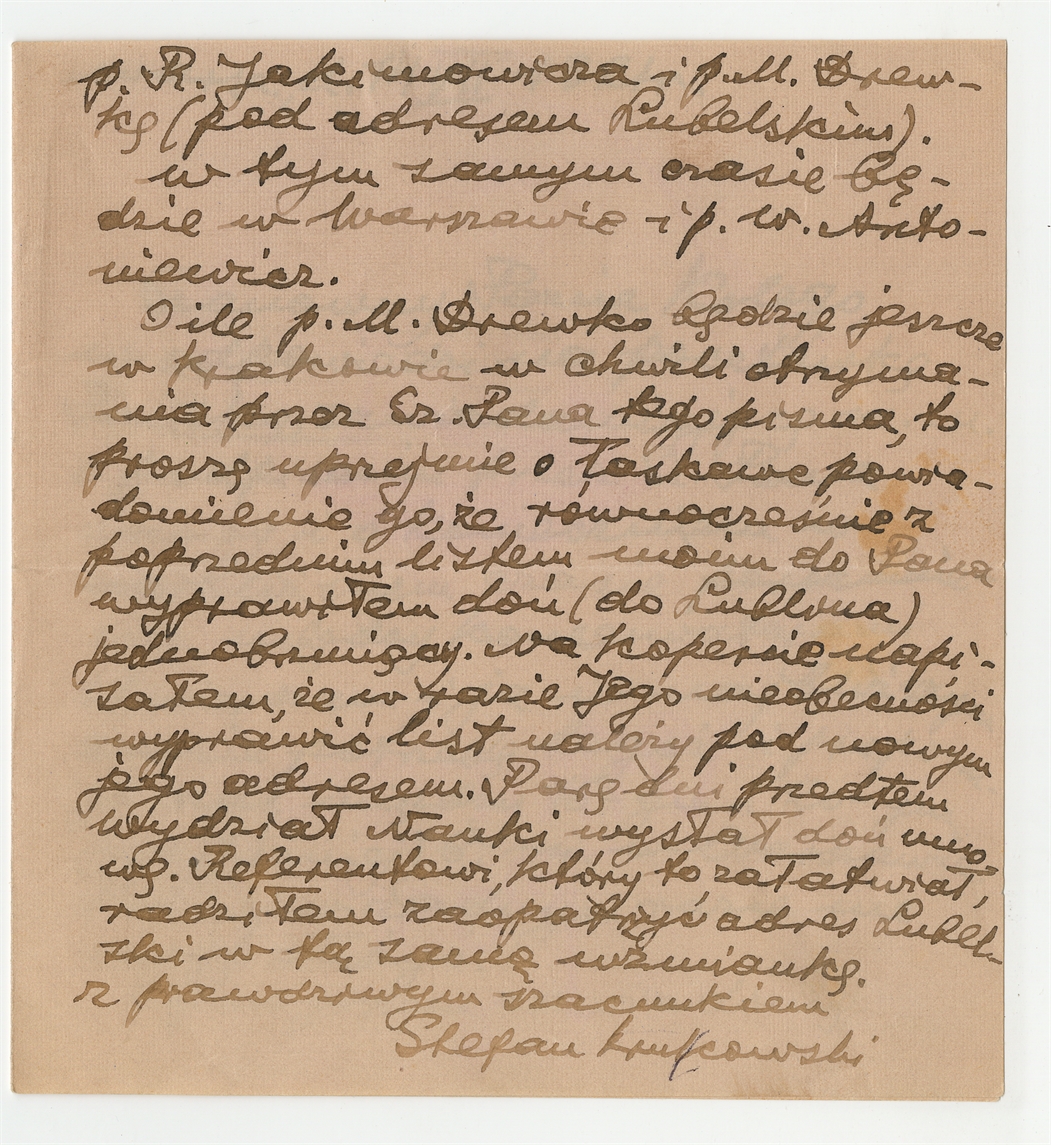 Rękopis - list Stefana Krukowskiego z dnia 14 VII 1921 roku do NN (cd)