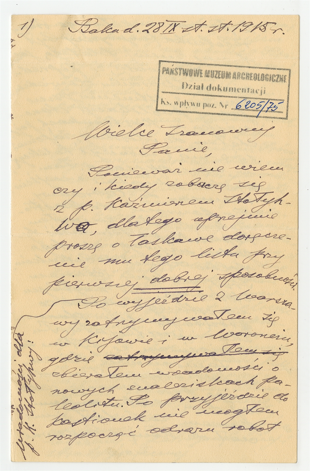 Rękopis - list Stefana Krukowskiego z dnia 28 IX 1915 do NN- strona 1